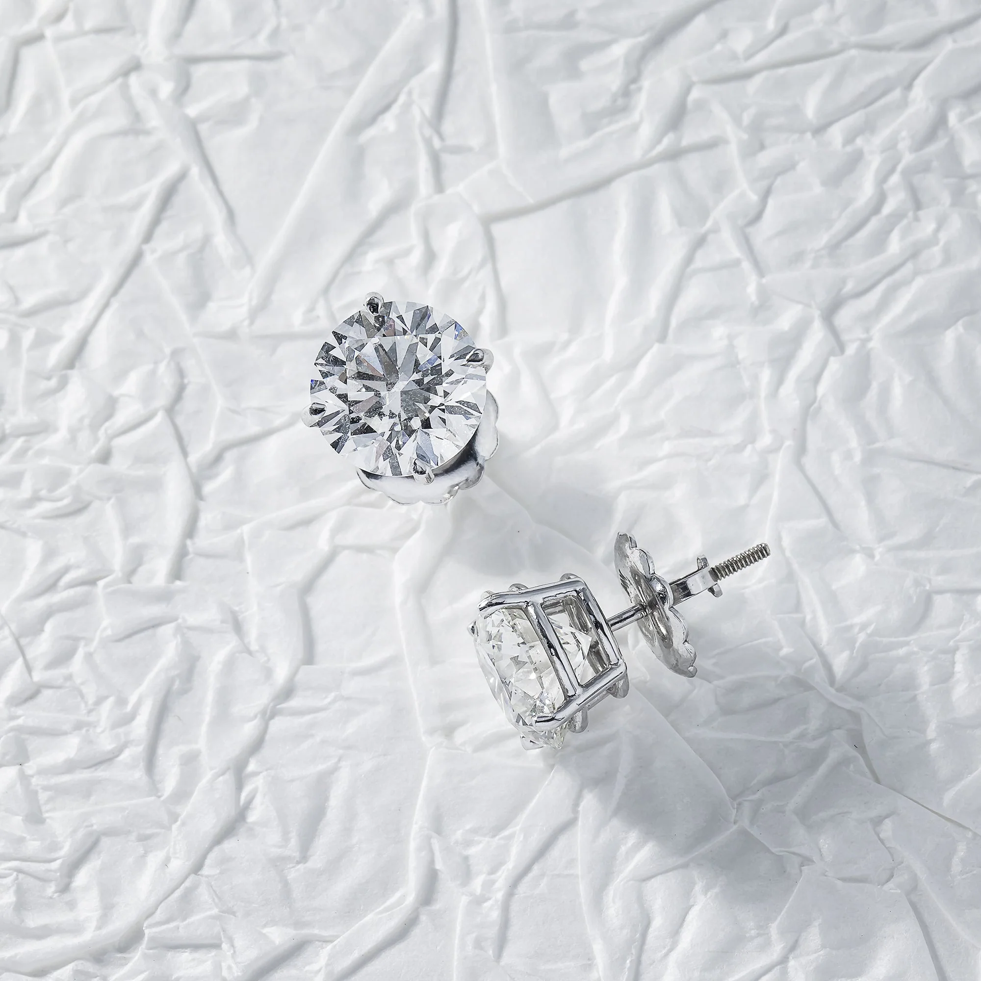 14K IGI Certified 4.10ct Each Solitaire Round Diamond Stud Earrings 8.20ctw