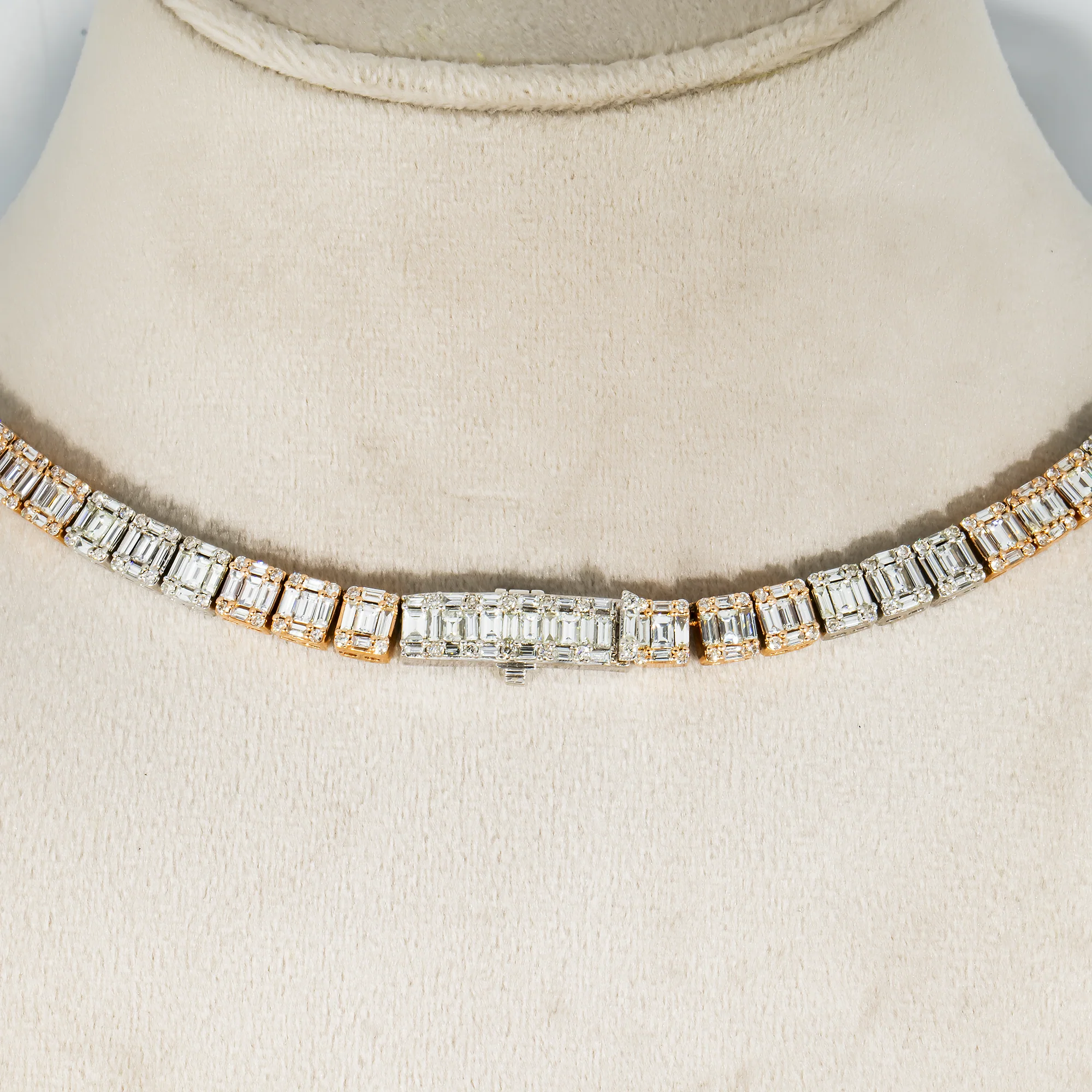 14K Two Tone Baguette & Round Diamond Chain 27.79ct