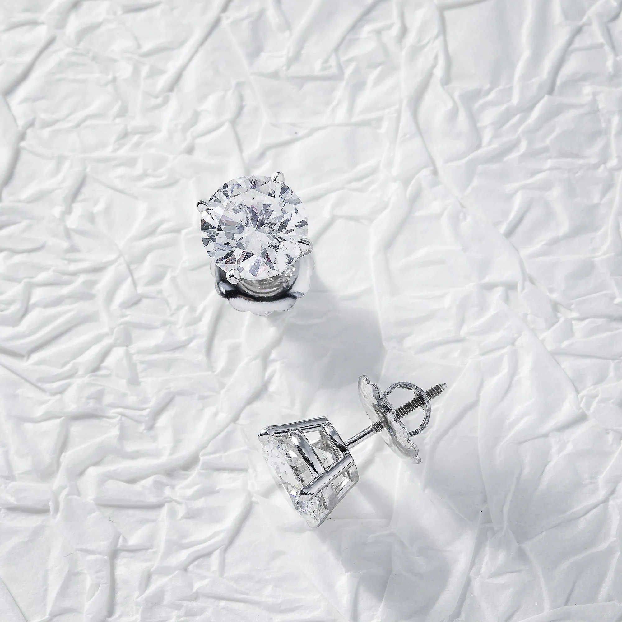 14K White Gold 2ct Each Solitaire Round Diamond Stud Earrings 4.0ctw