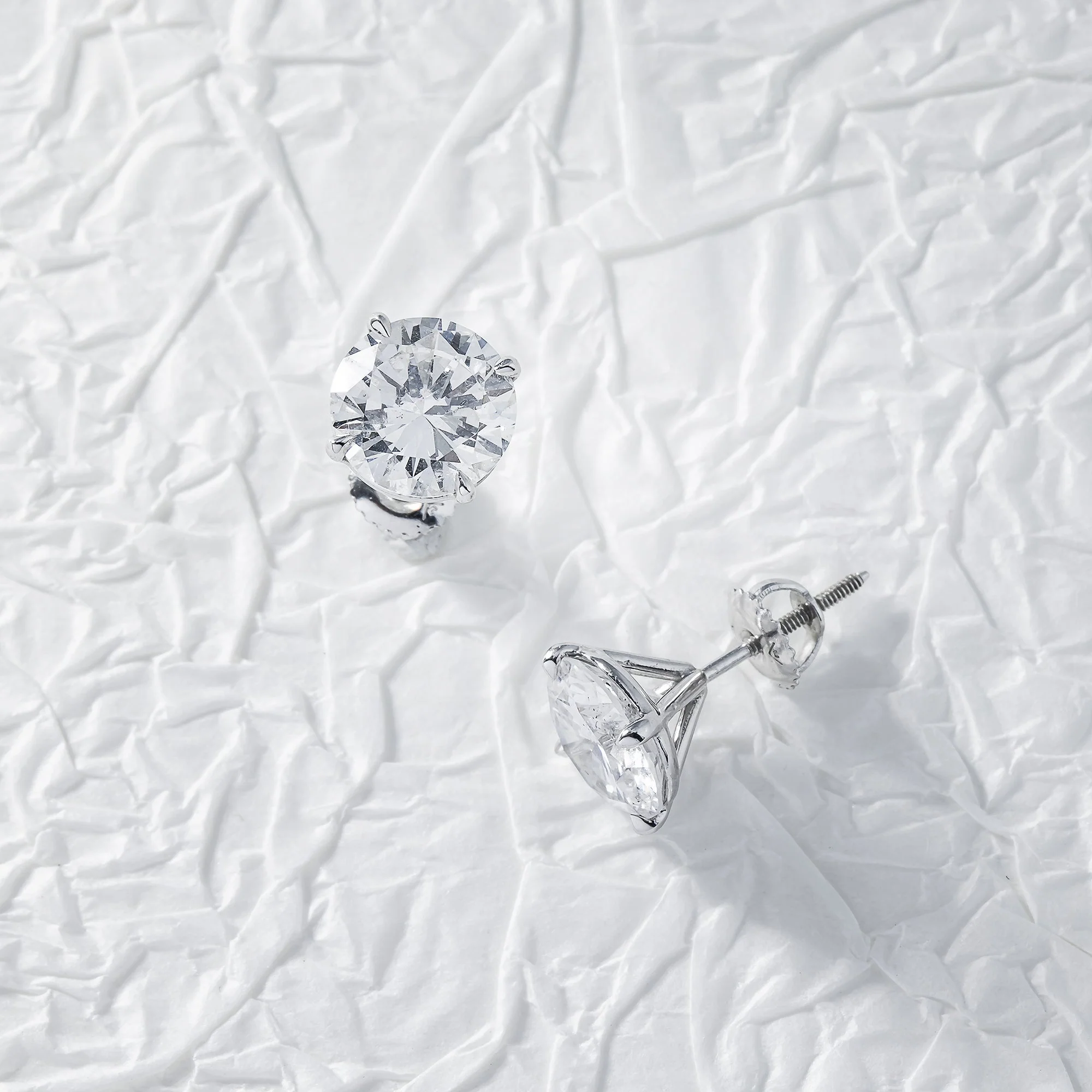 -70%14K White Gold 3ct Each Solitaire Round Diamond Stud Earrings 6.10ctw—