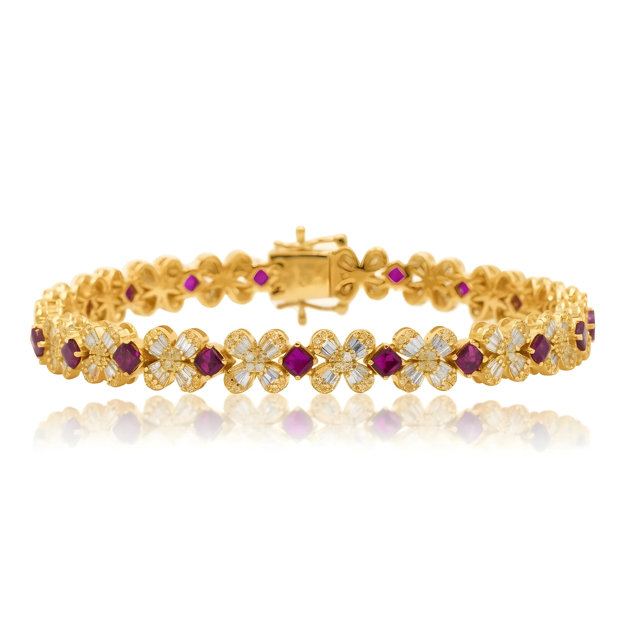 14K White Gold Asscher Cut Ruby & Diamond Bracelet