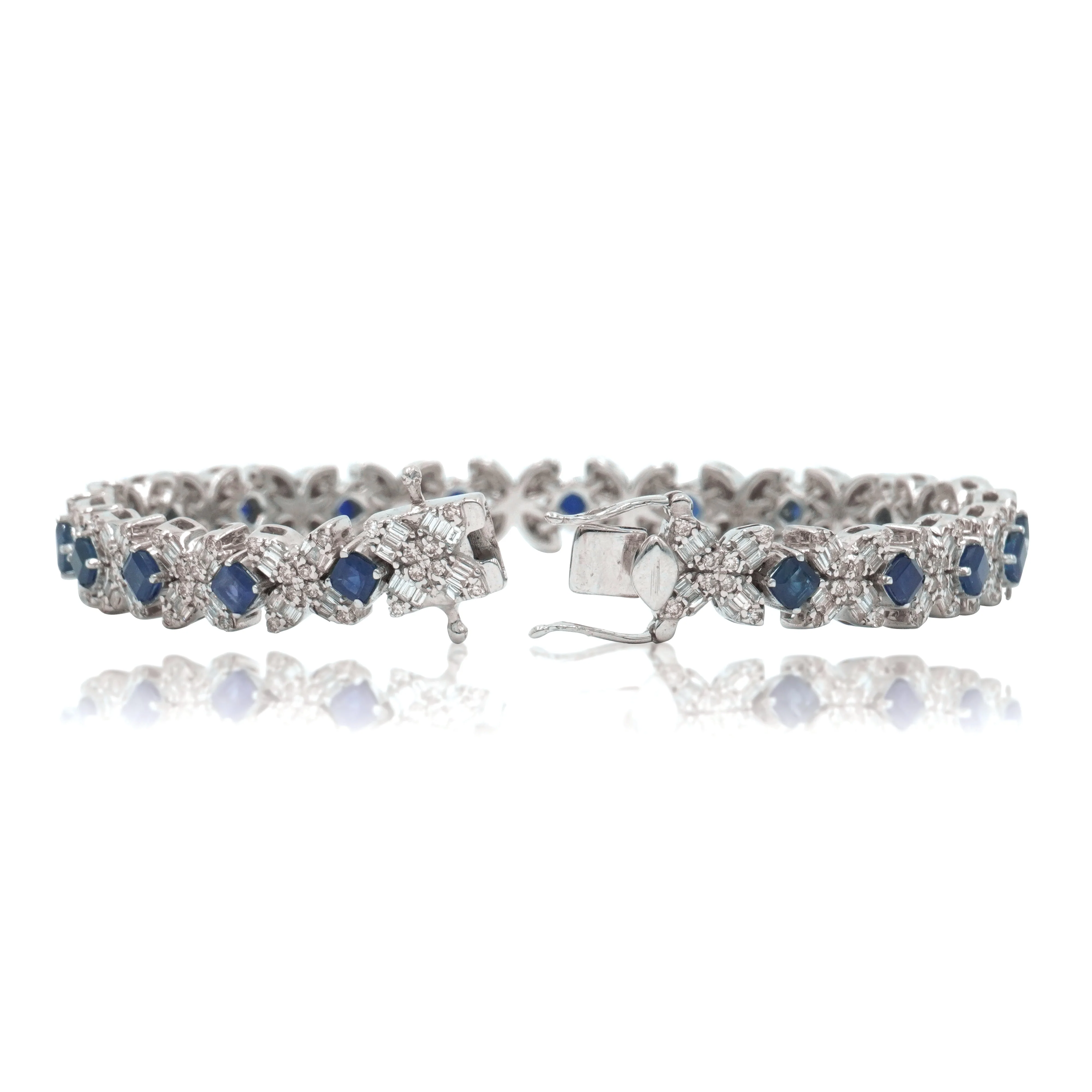 14K White Gold Asscher Cut Sapphire & Diamond Bracelet