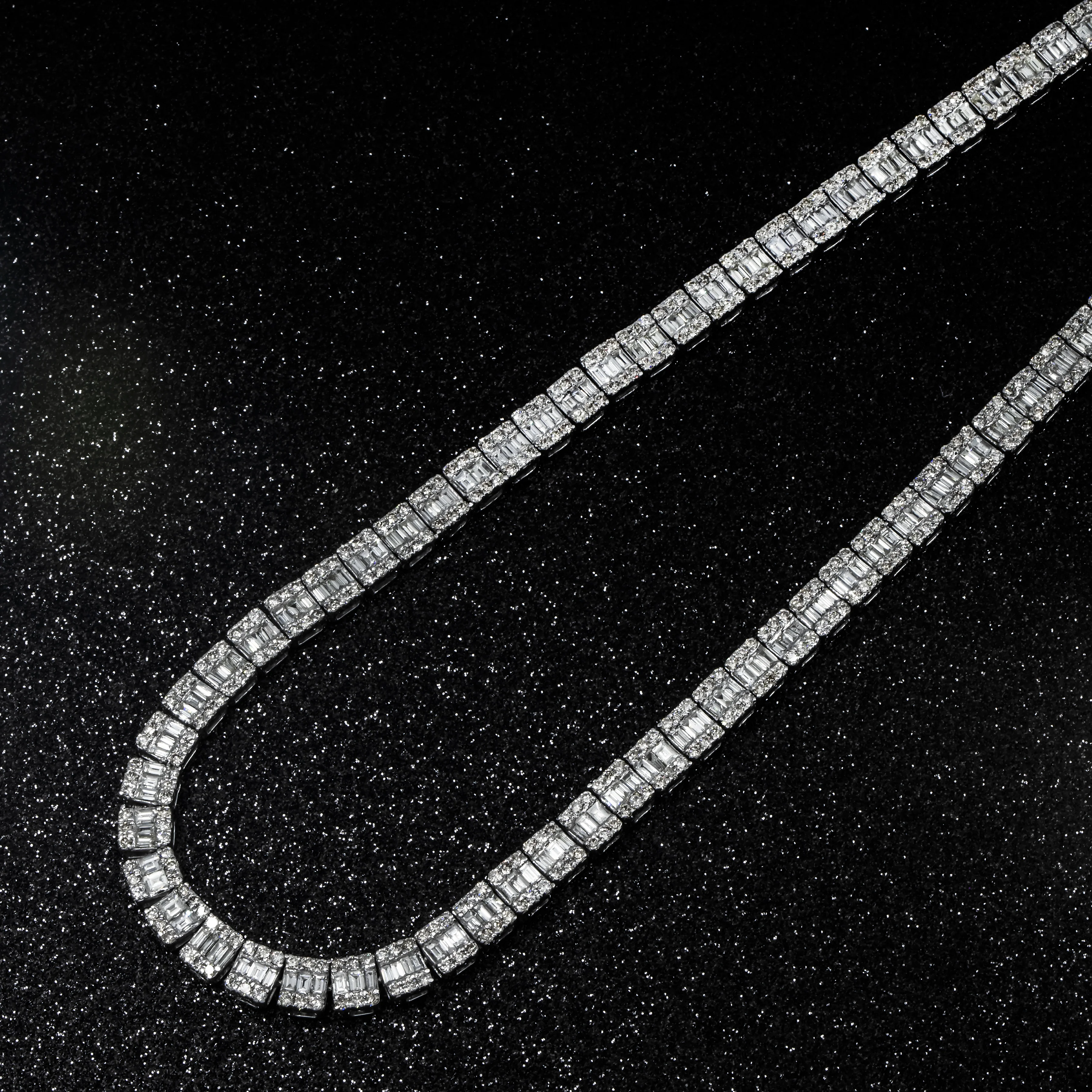 14K White Gold Baguette Diamond Chain 19.86ct