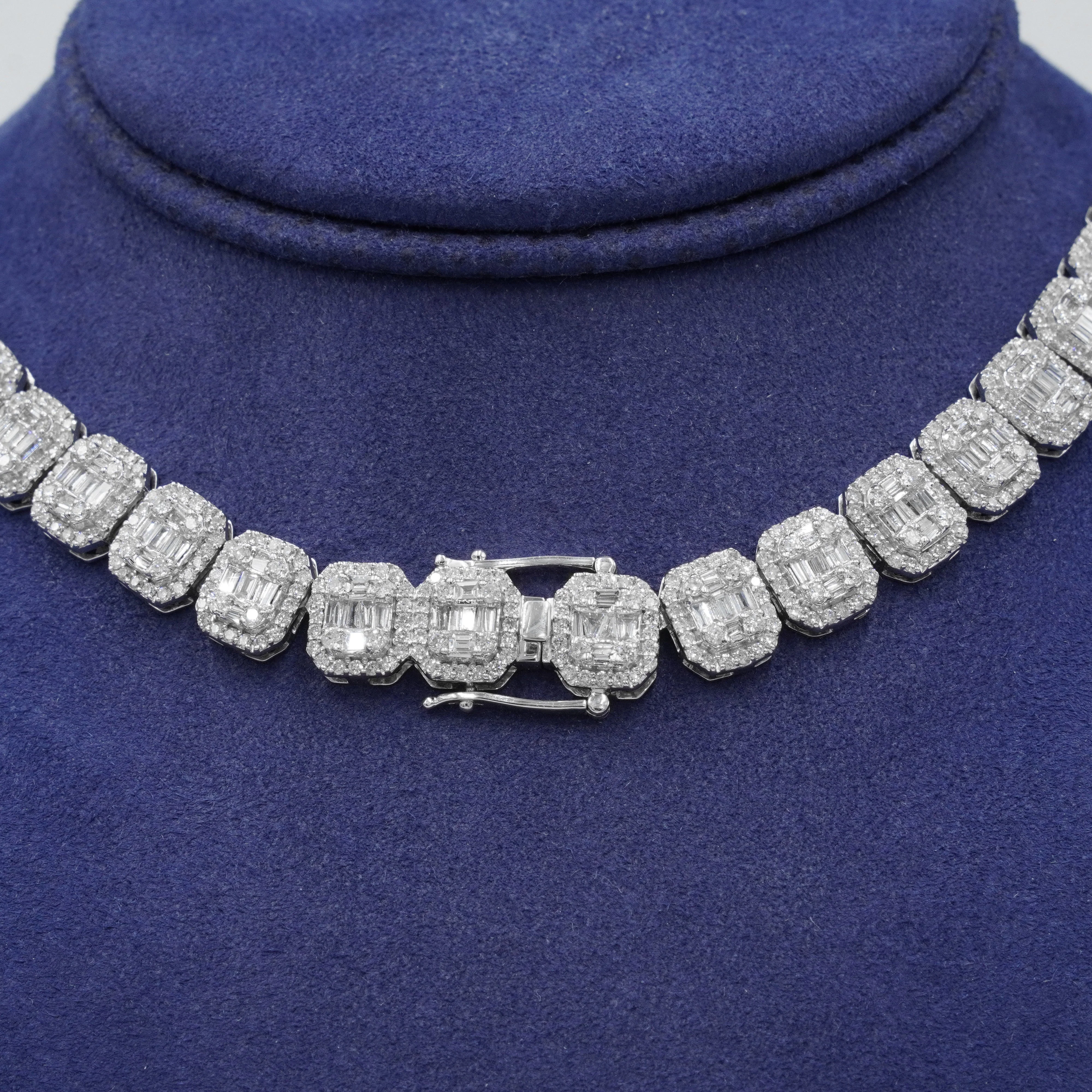 14K White Gold Baguette & Round Graduated Diamond Chain 27.03ct—