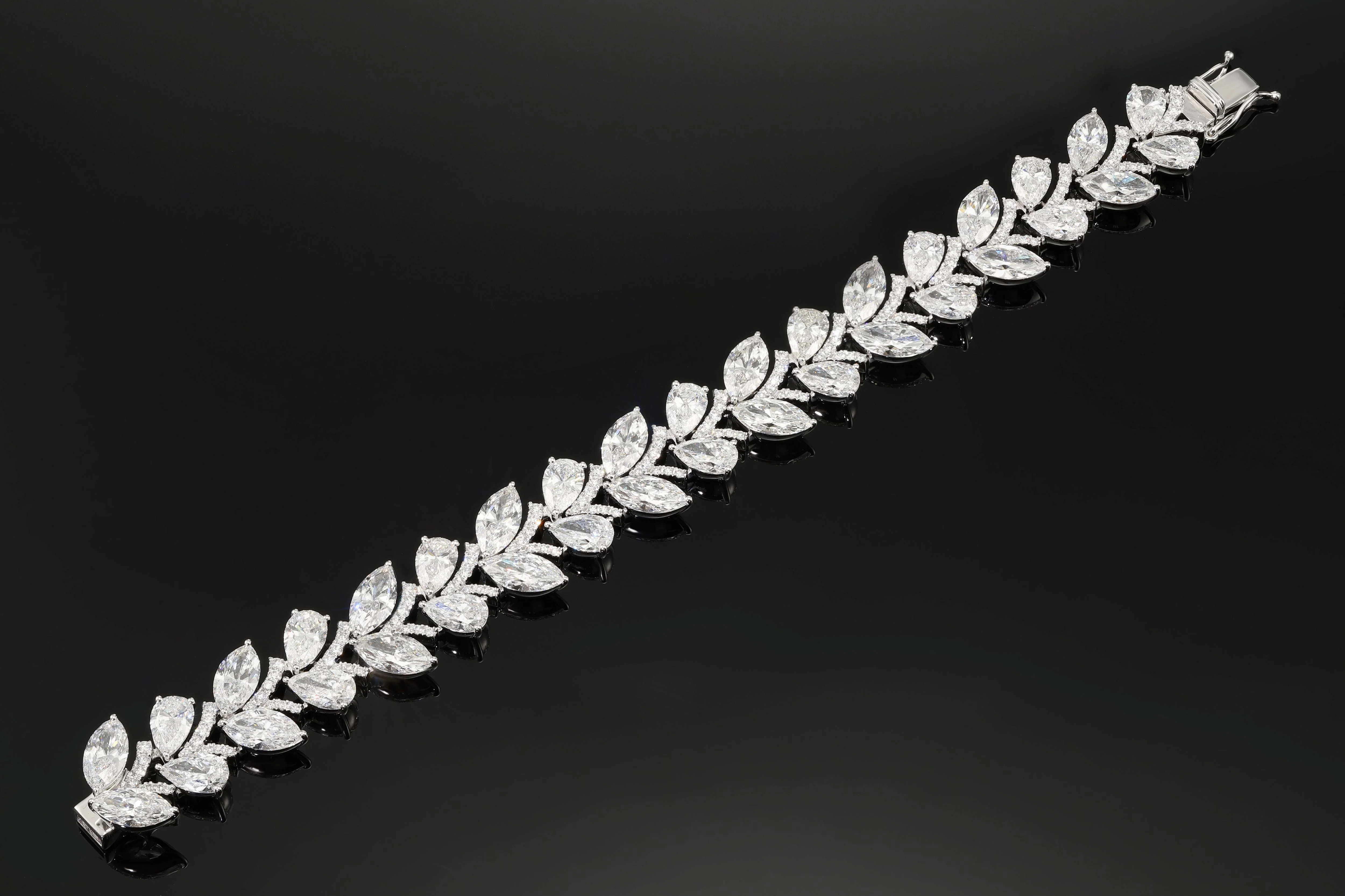 14K White Gold Combination Cut Diamond Bracelet 31.66ctw