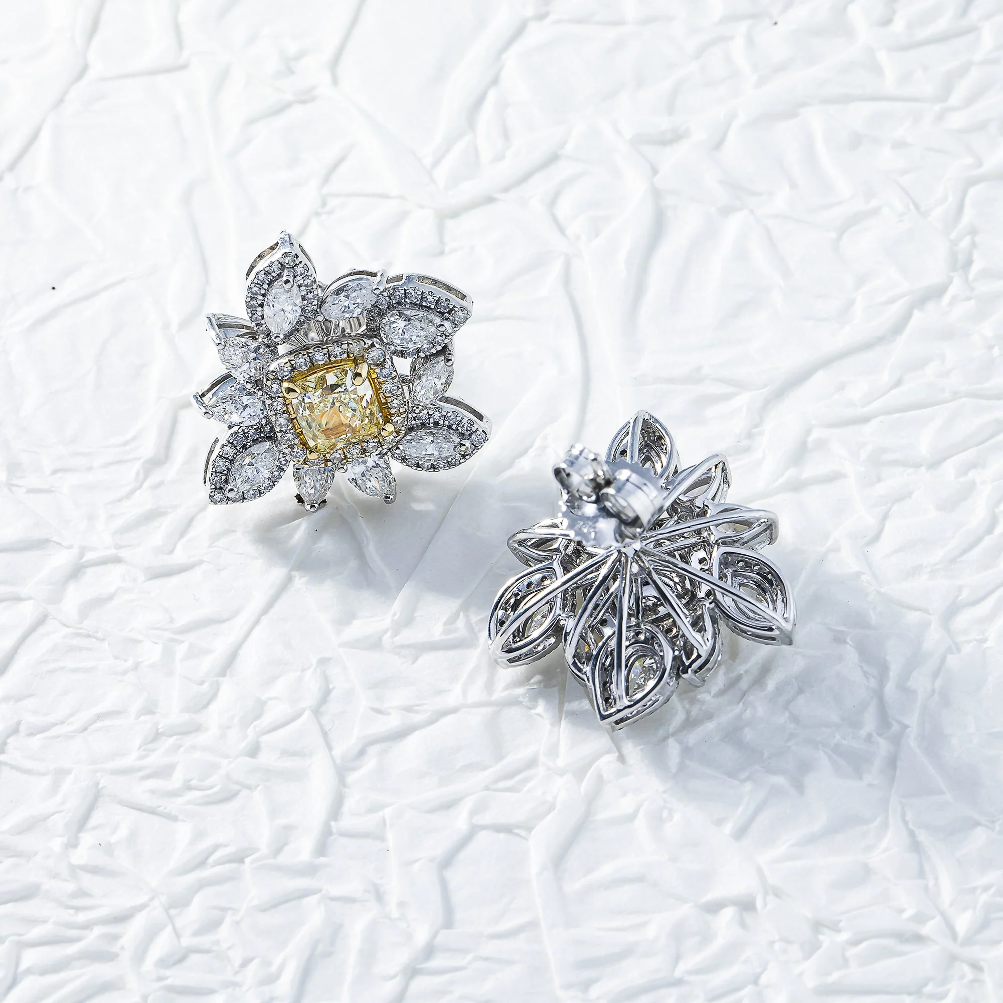 14K White Gold Canary Yellow Diamond Cluster Stud Earrings 5.16ctw