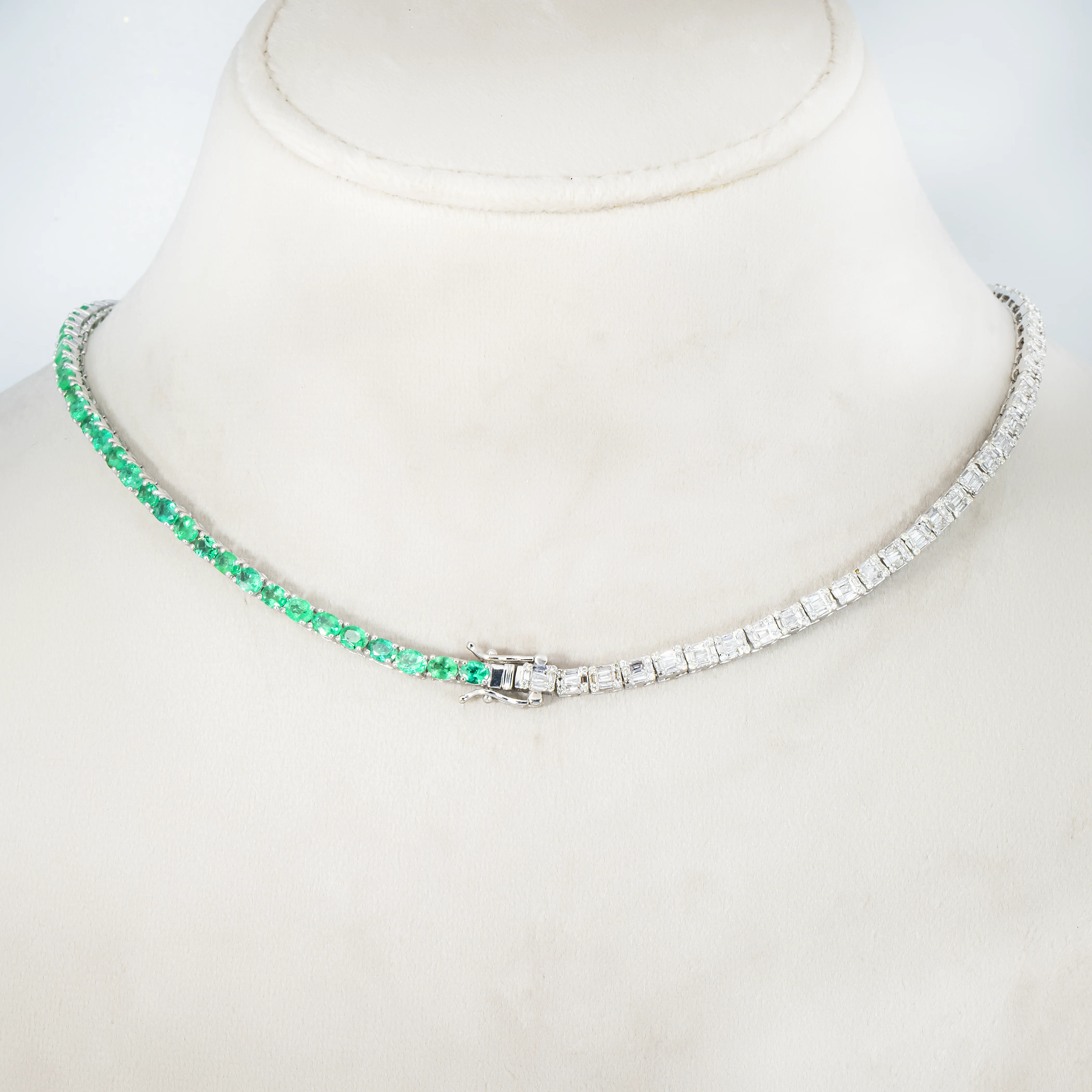 14K White Gold Oval Cut Emerald & Diamond Drop Necklace