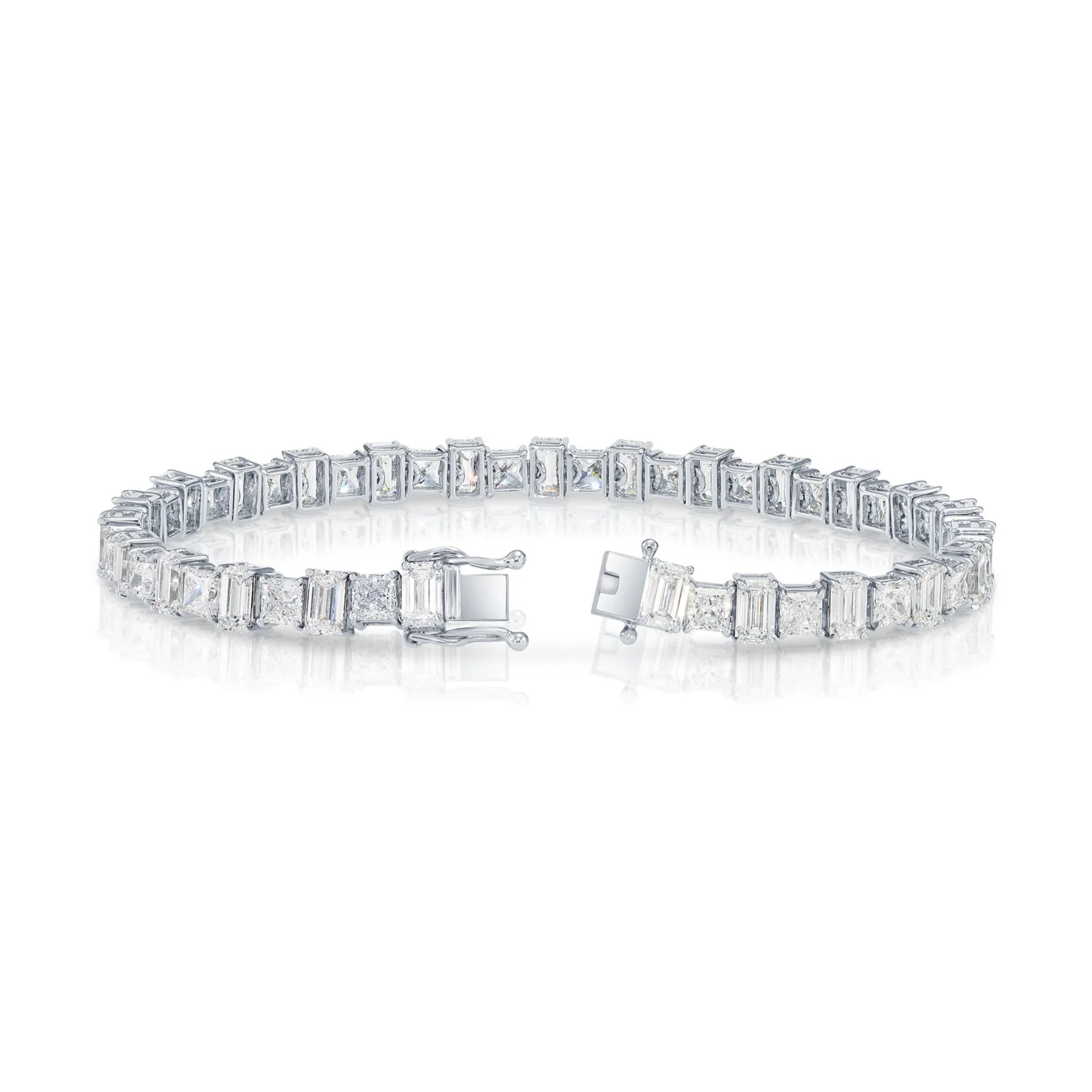 14K White Gold Emerald & Radiant Cut Diamond Bracelet 13.72ctw