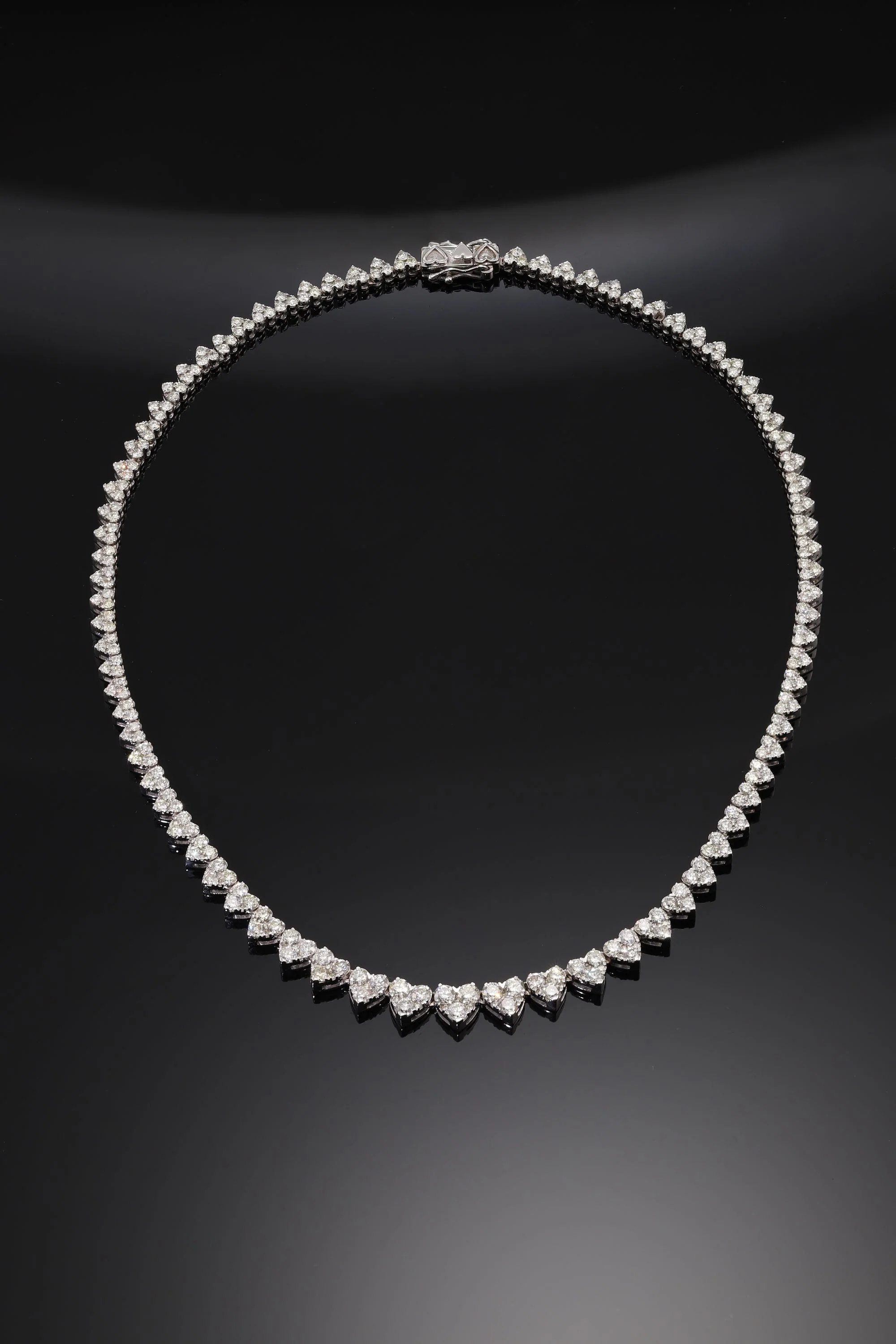 14K White Gold Graduated Diamond Heart Necklace 13ct