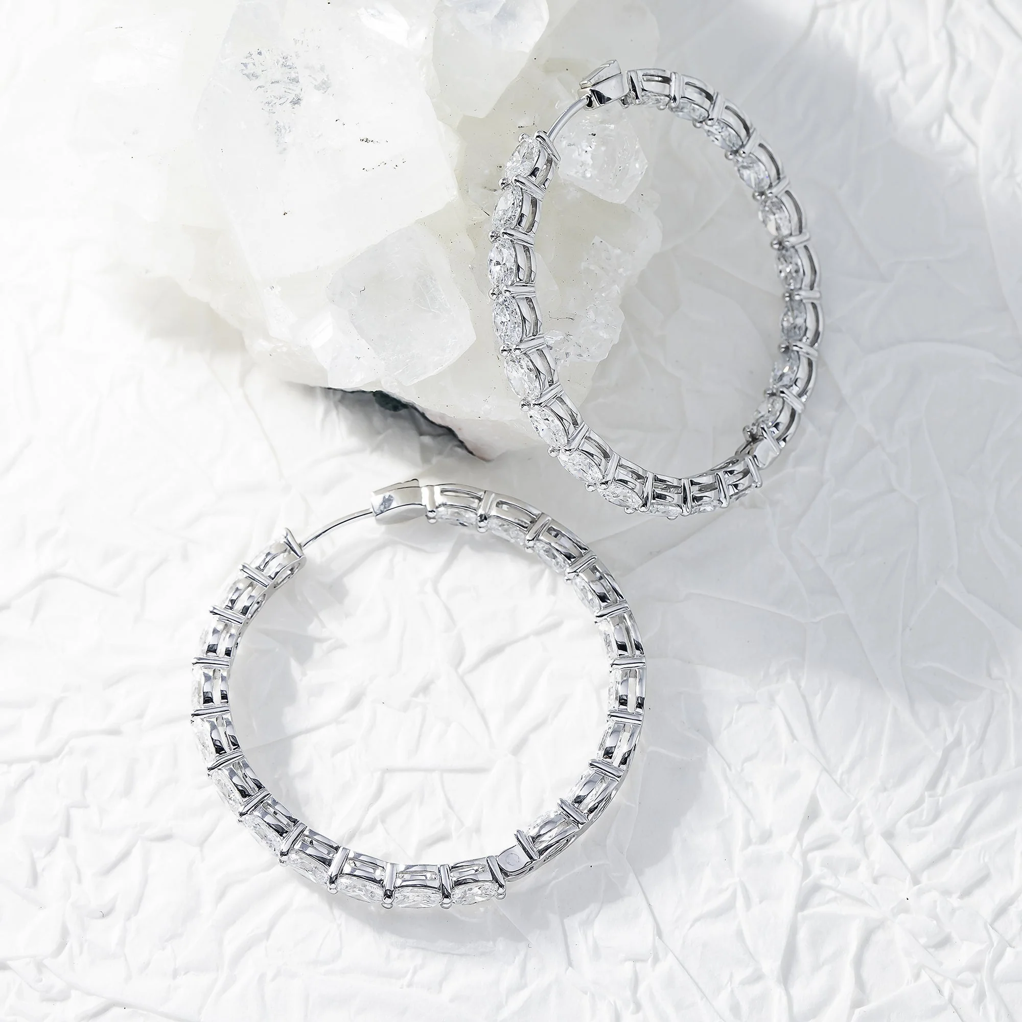 14K White Gold Oval Diamond Inside Out Diamond Hoops Earrings 9.60ctw