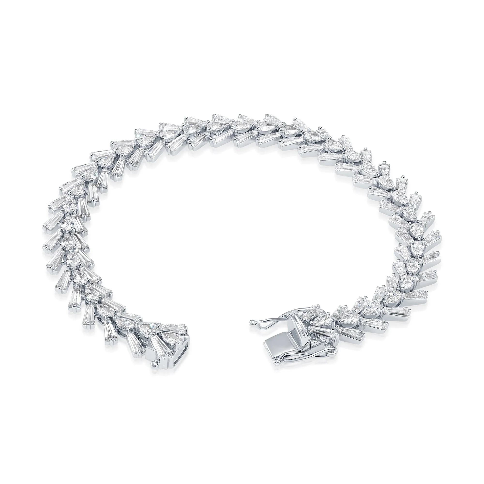 14K White Gold Pear & Baguette Cut Diamond Bracelet 10.42ctw
