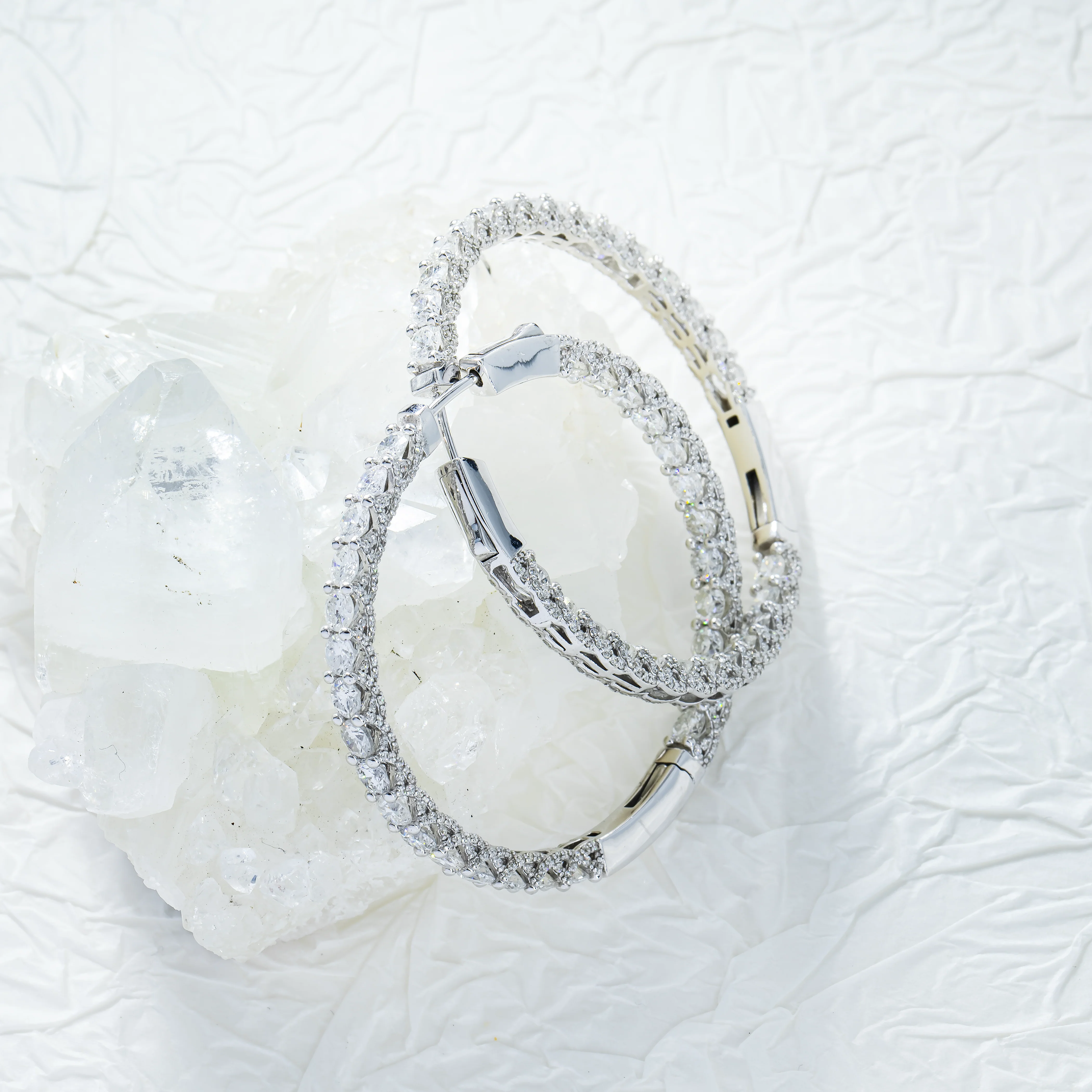 14K White Gold Round Diamond Inside Out Hoop Earrings 11.12ctw