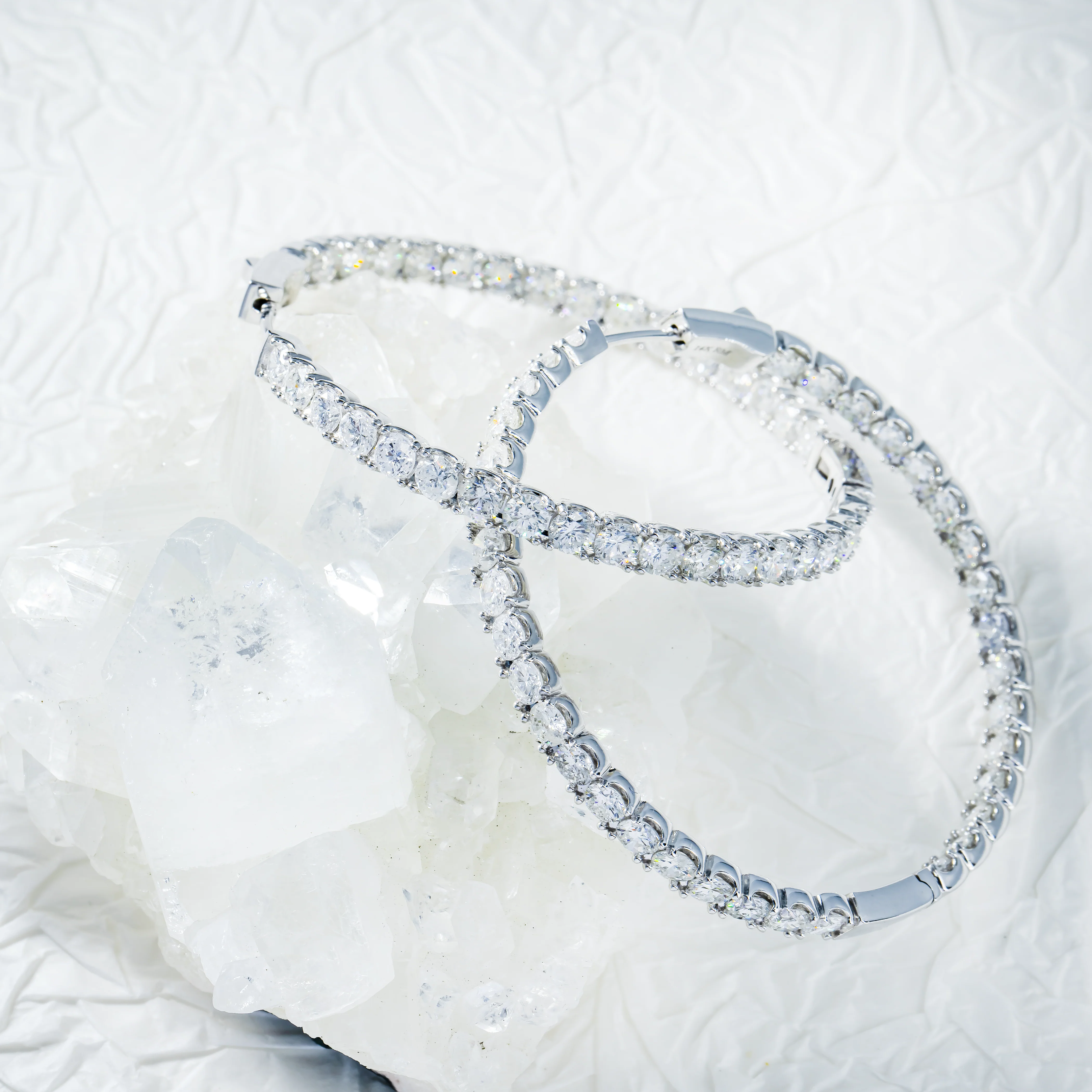 14K White Gold Round Diamond Inside Out Hoop Earrings 11.60ctw