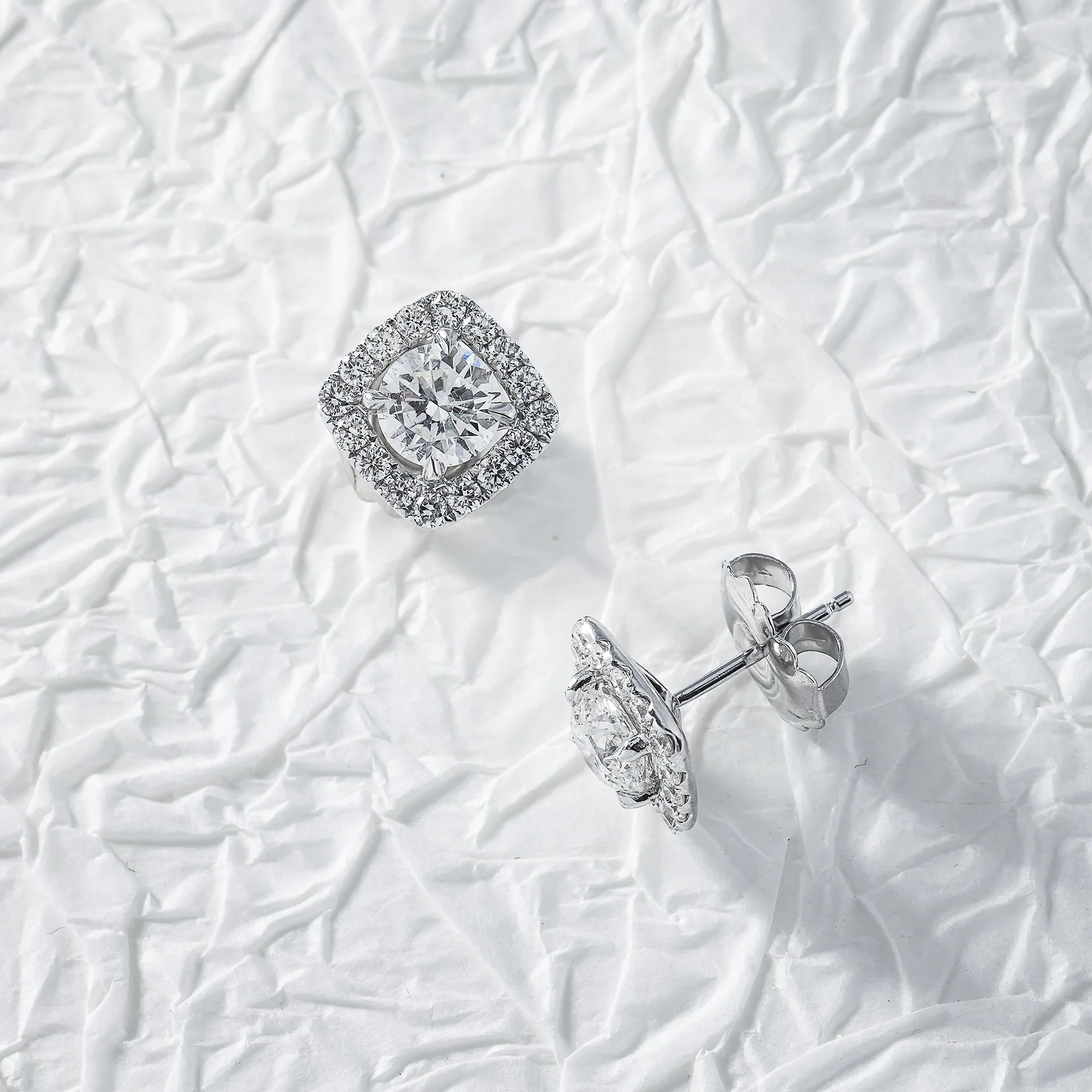 14K White Gold Square Shape Round Diamond Cluster Stud Earrings 2.83ctw