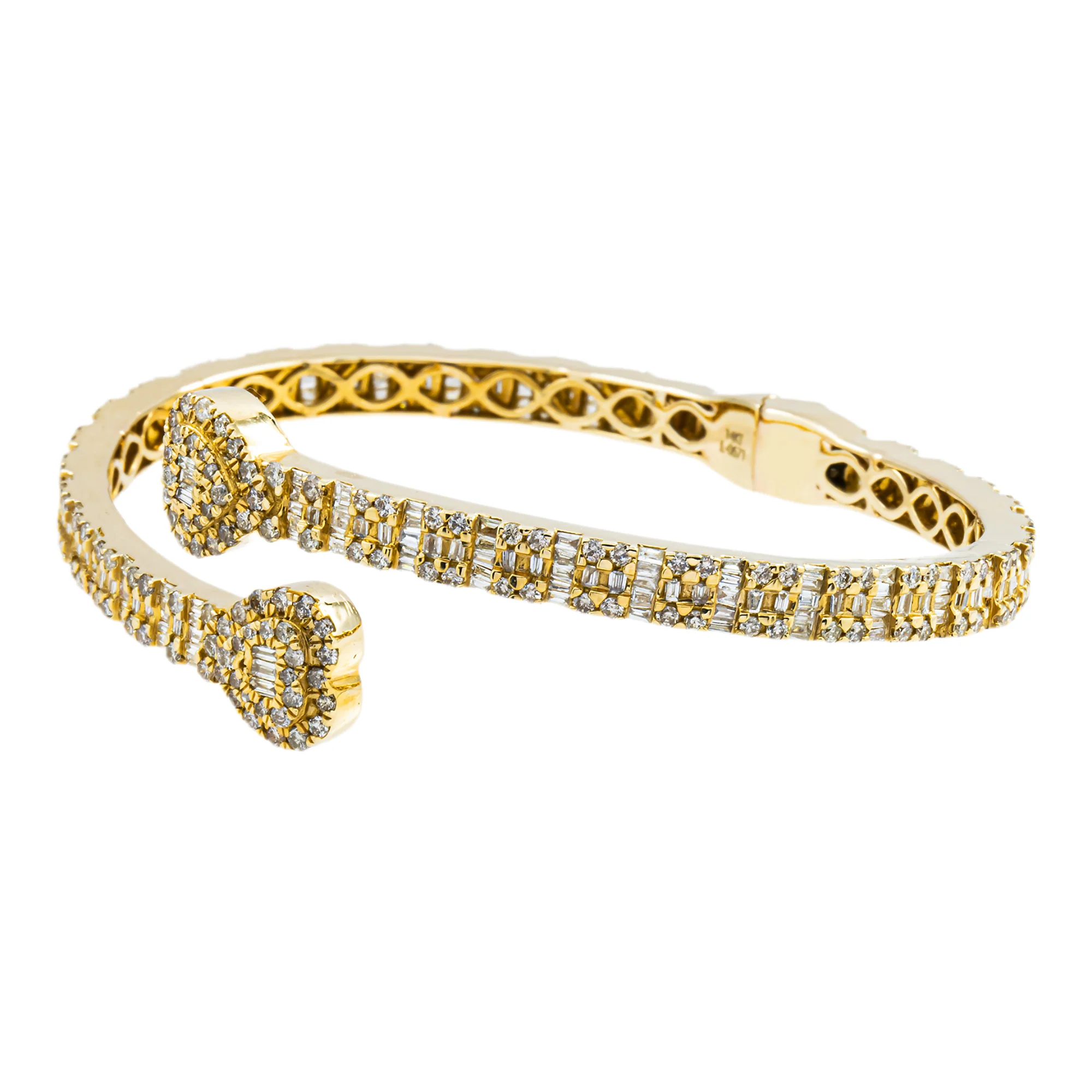 14K Yellow Gold Baguette & Round Diamond Heart Bangle Bracelet 4.50ct