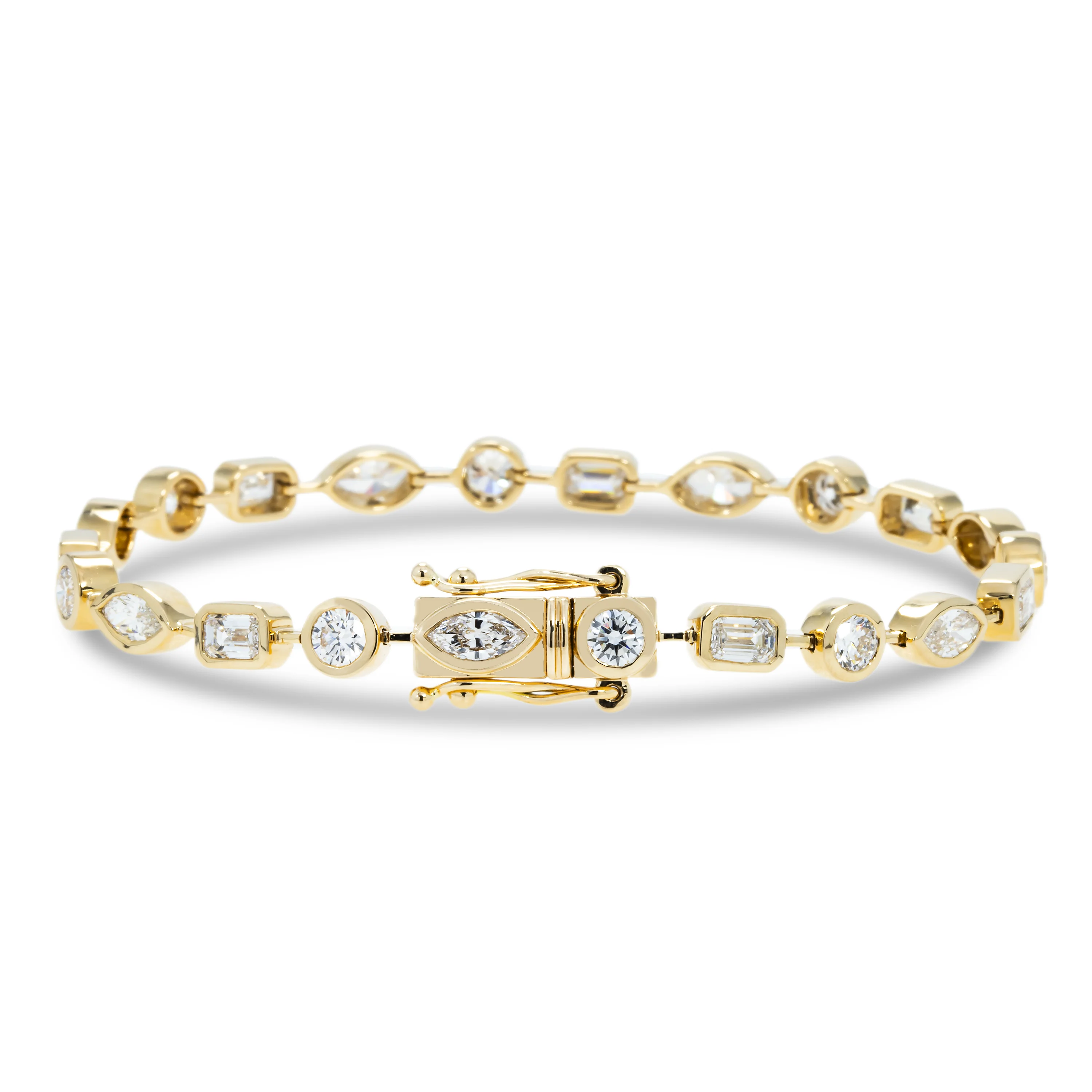 14K Yellow Gold Bezel Set Multi Cut Diamond Satellite Bracelet 4.30ct