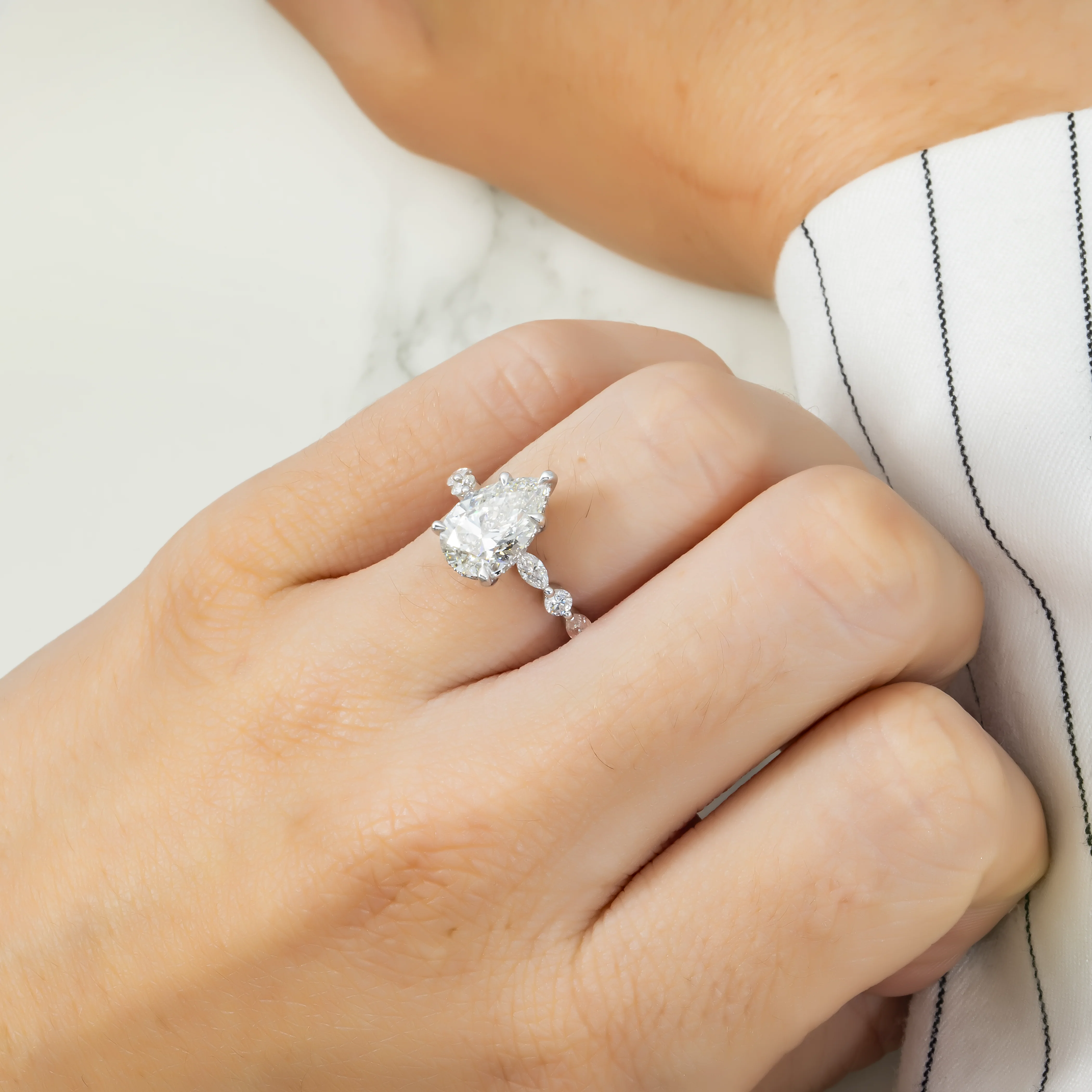 18K White Gold 2.29ct Pear Cut Diamond Engagement Ring 3.29ctw