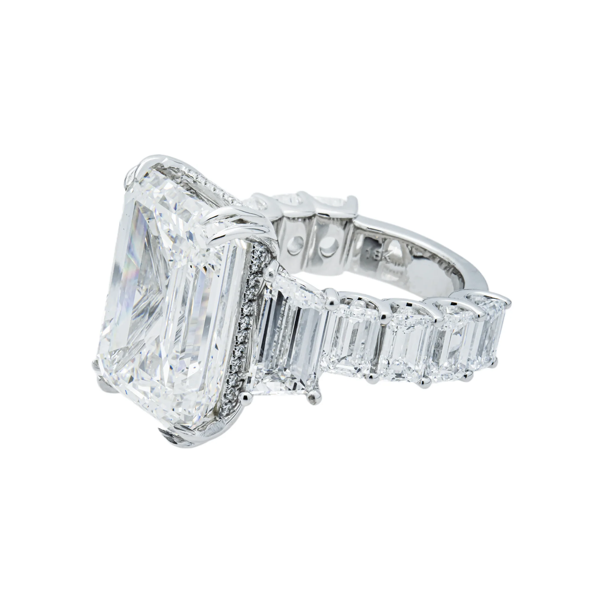 -70%18K White Gold 20.01ct Emerald Diamond Engagement Ring 28.51ctw—