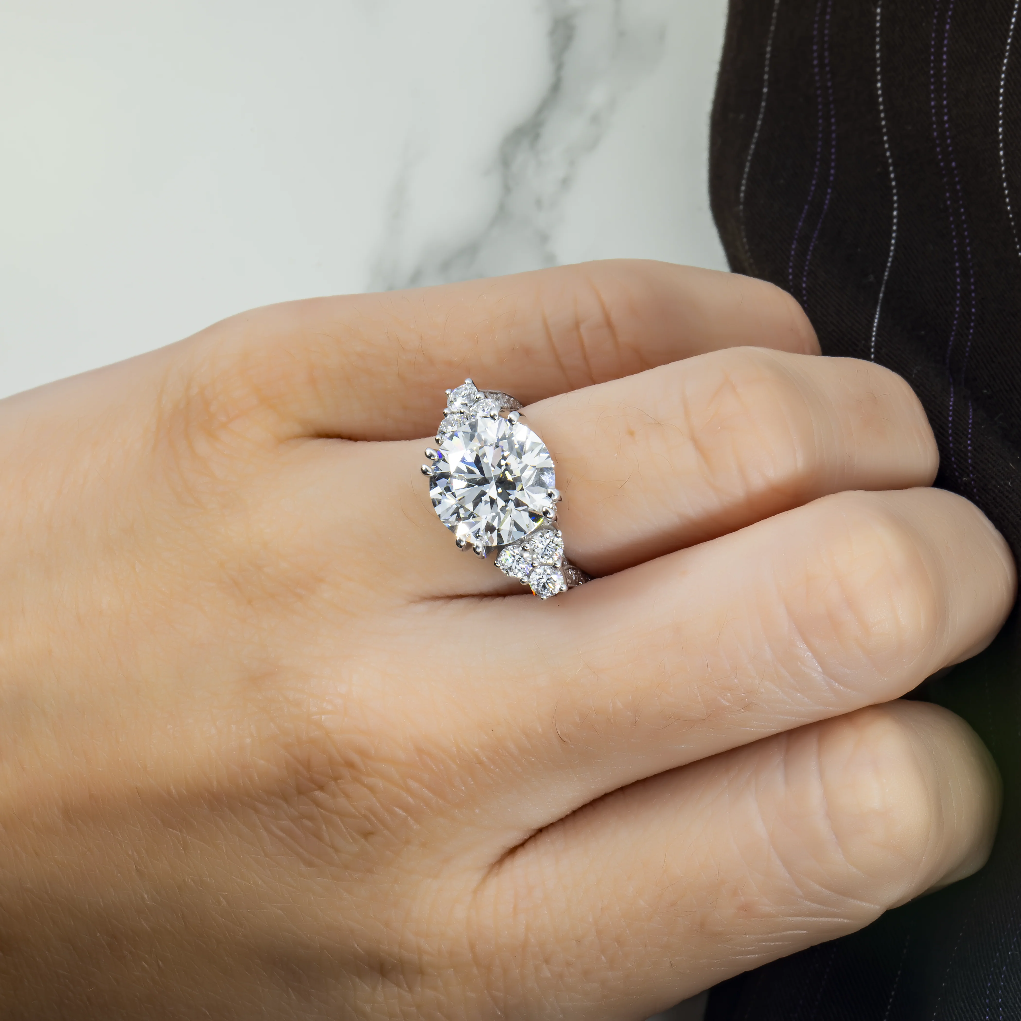 GIA 18K White Gold 5.62ct Round Cut Triple Diamond Engagement Ring 7.47ctw