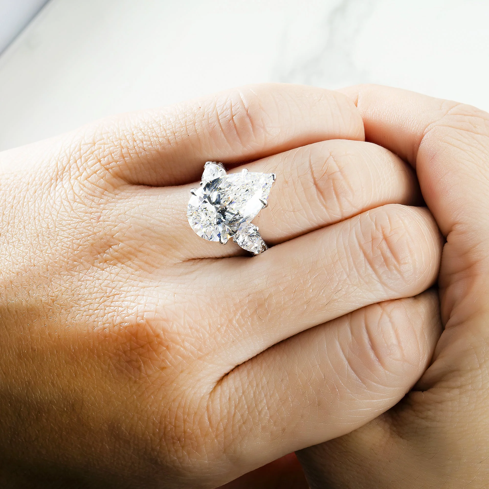 18K White Gold 9.02ct Triple Pear Cut Diamond Engagement Ring 12.22ctw