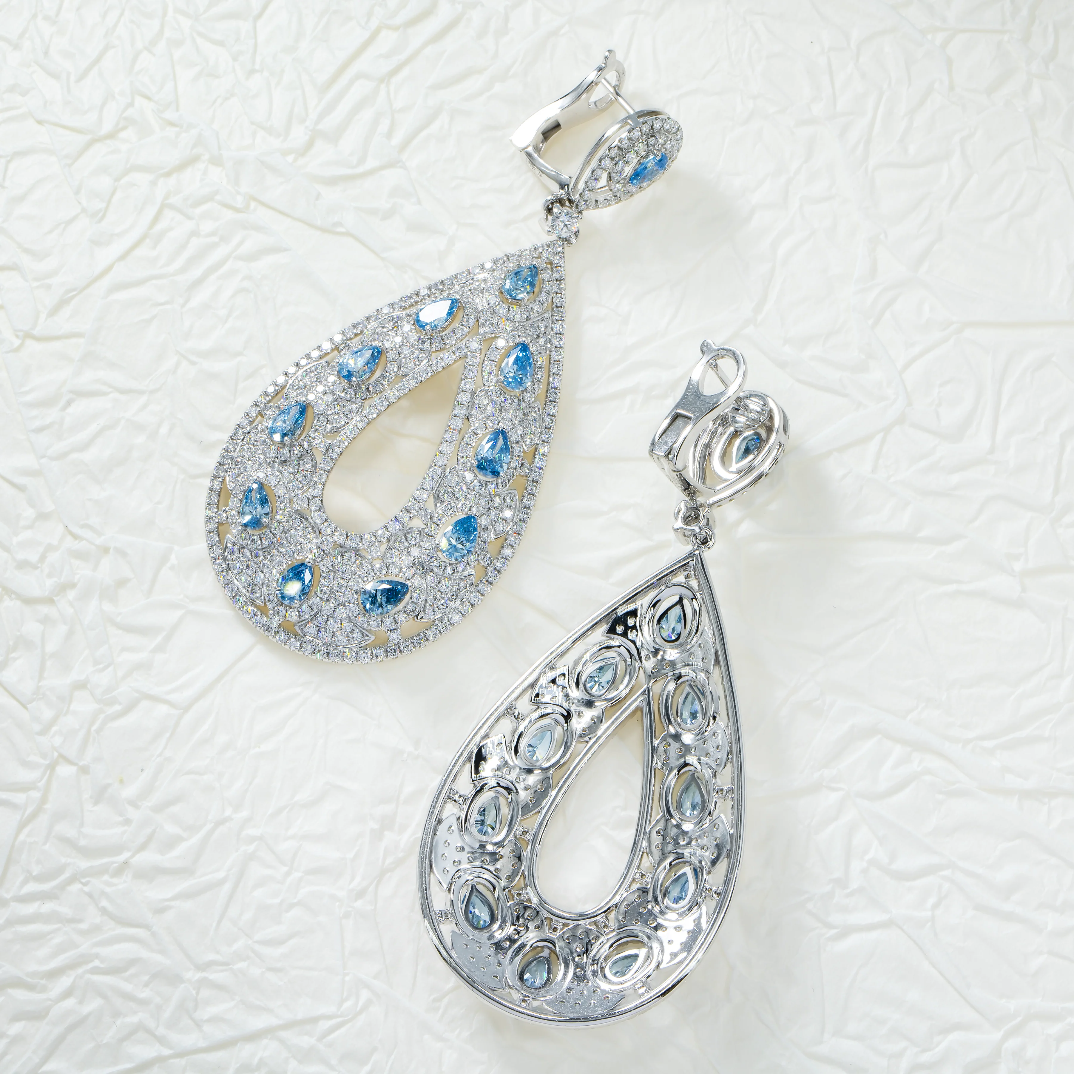 18K White Gold Blue Diamond Raindrop Earrings 12.25ctw