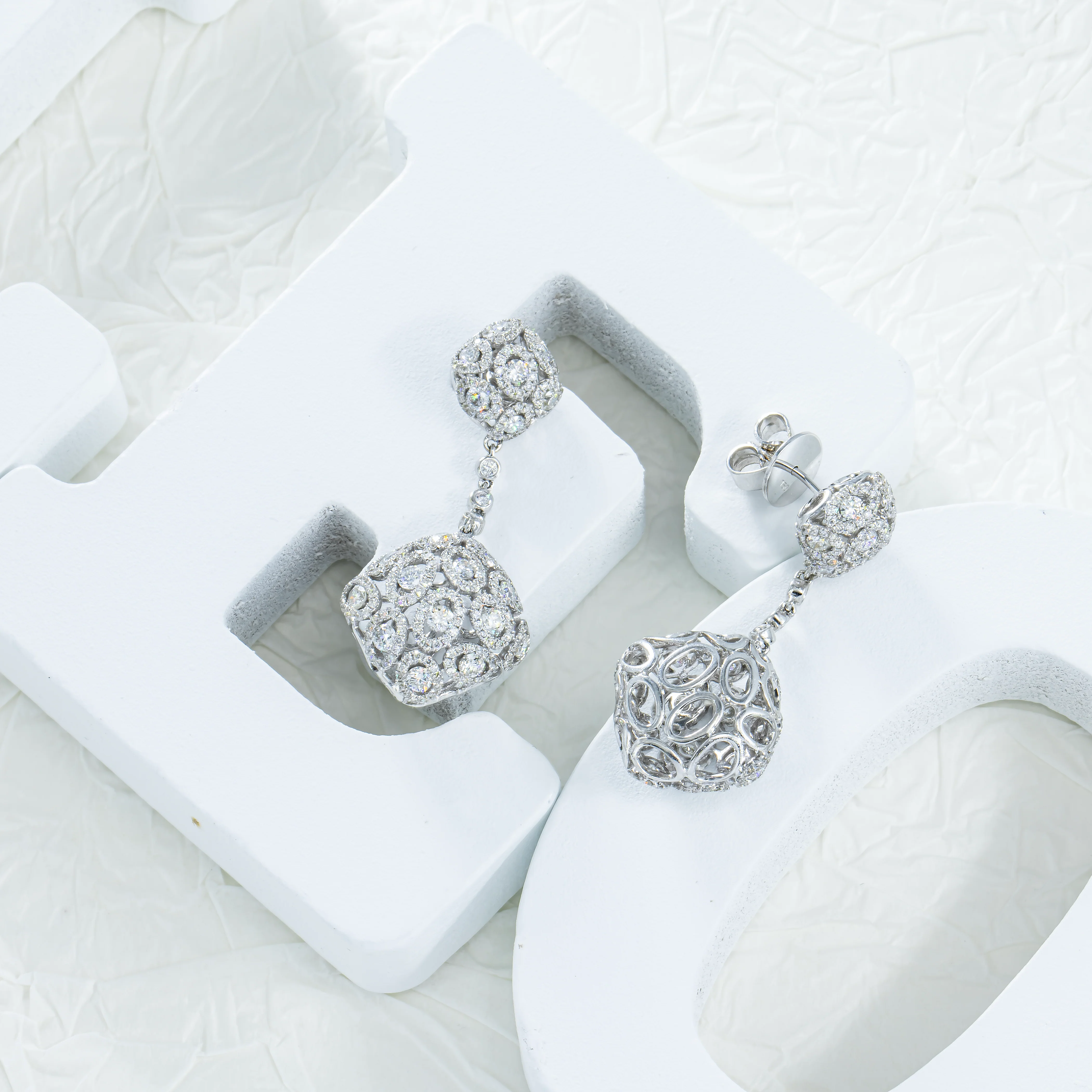 18K White Gold Detailed Diamond Drop Earrings 12.29ctw