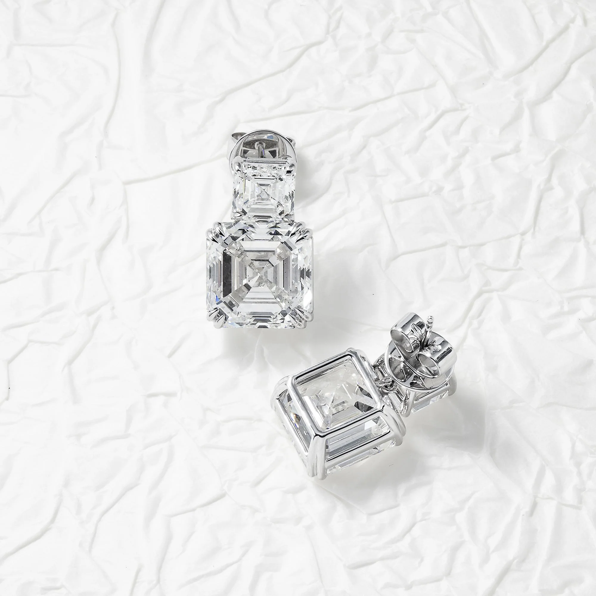 18K White Gold Double Asscher Cut Diamond Short Drop Earrings 24.43ctw
