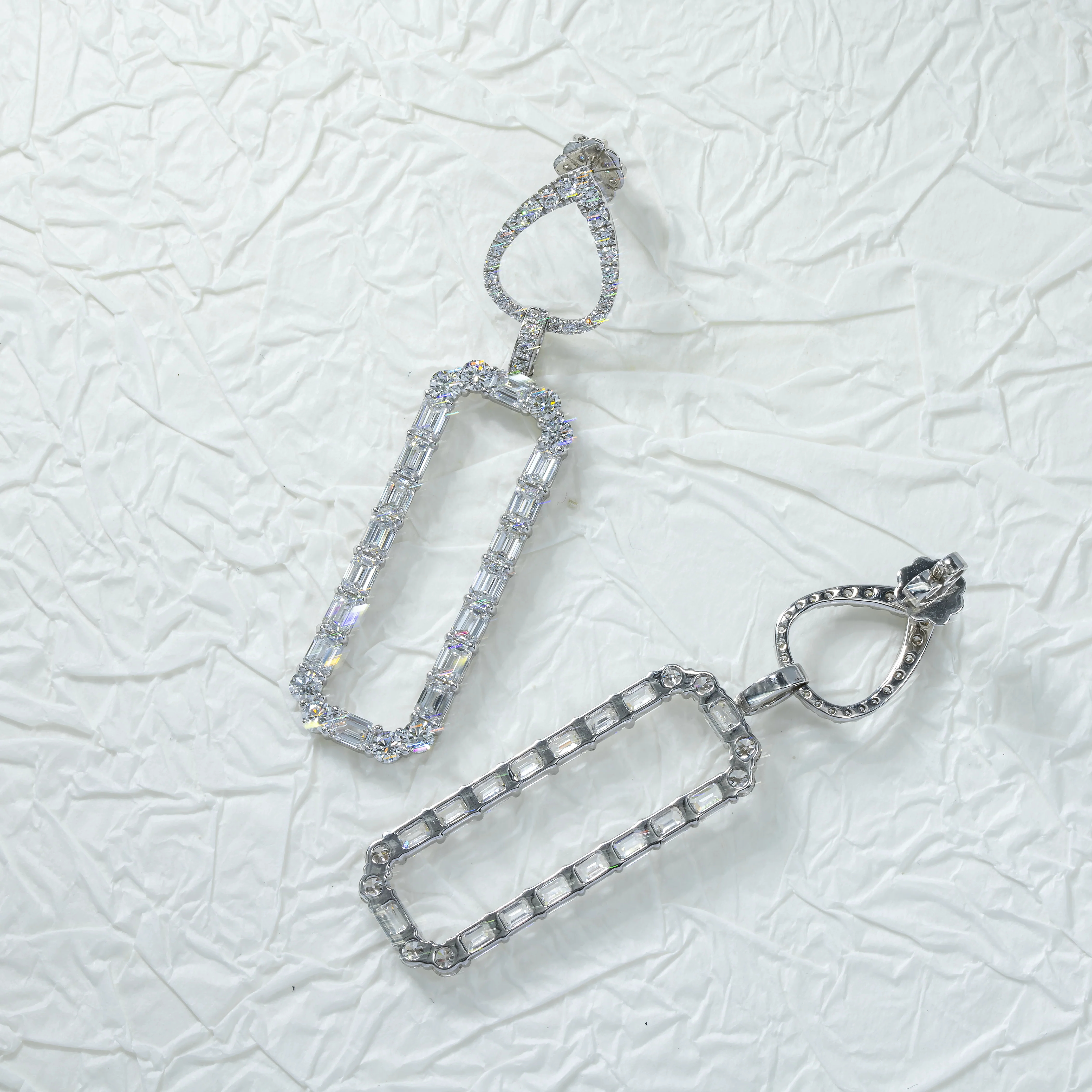 18K White Gold Emerald Rectangular Diamond Drop Earrings 9.18ctw