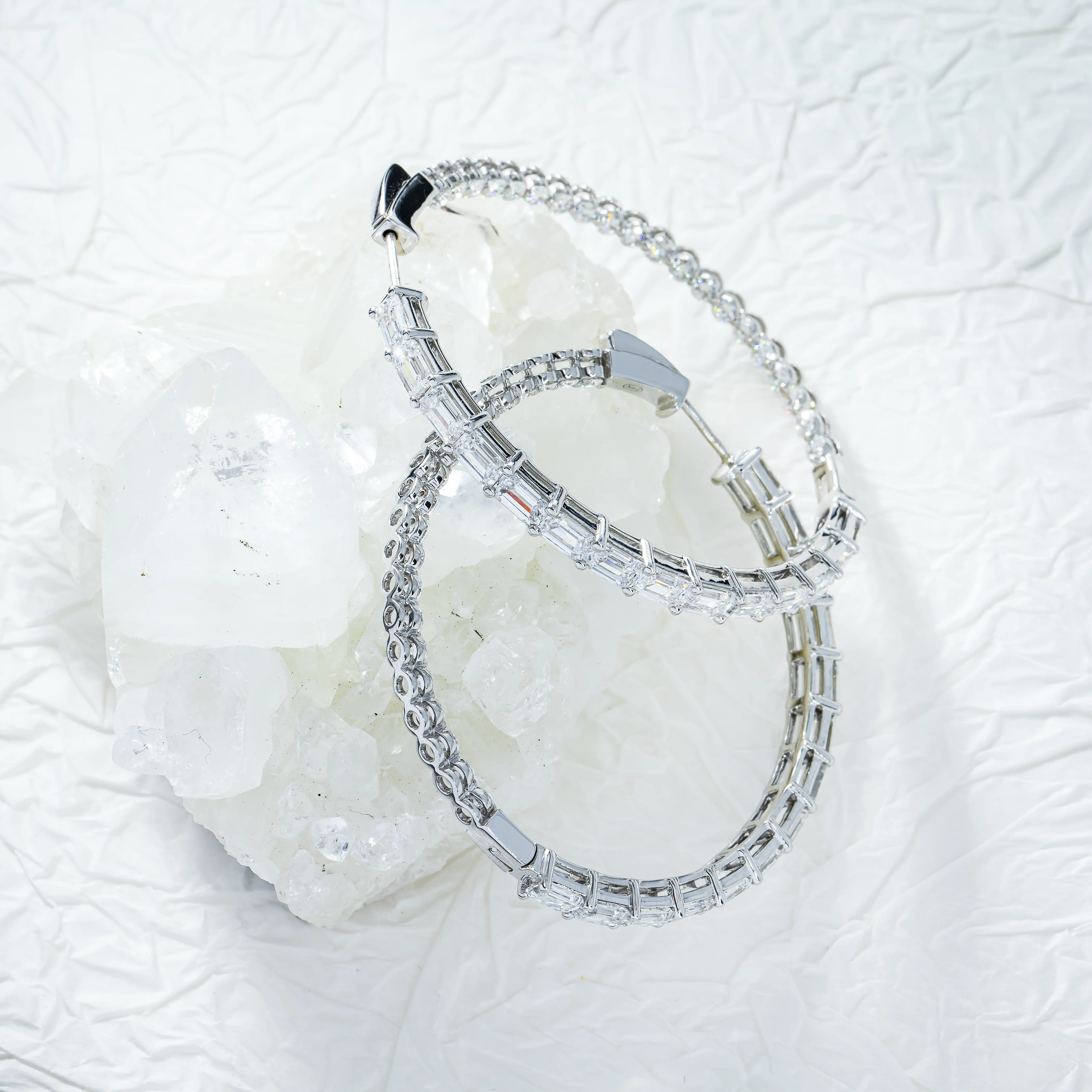 18K White Gold Emerald & Round Diamond Inside Out Hoop Earrings 11.60ctw