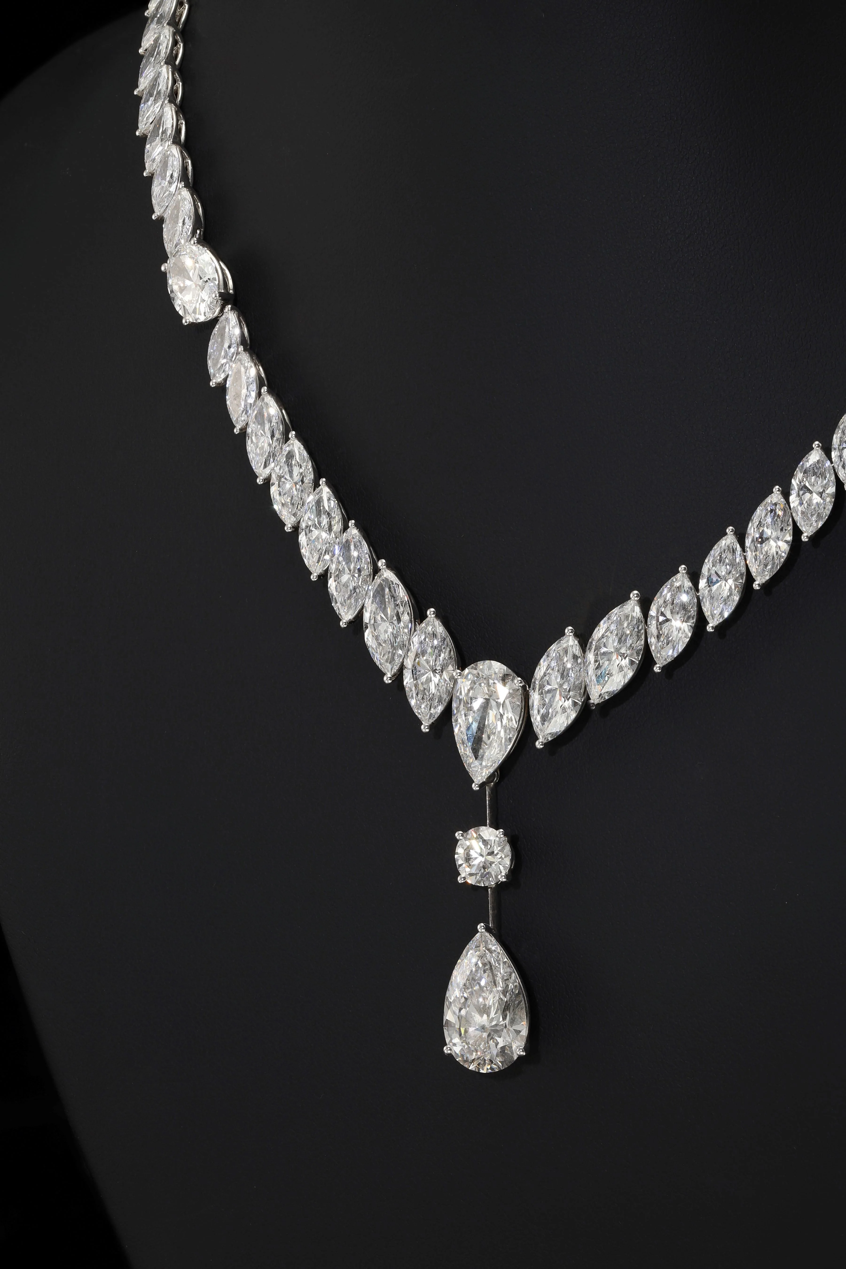 18K White Gold Marquise Cut Diamond Drop Necklace 54.01ct