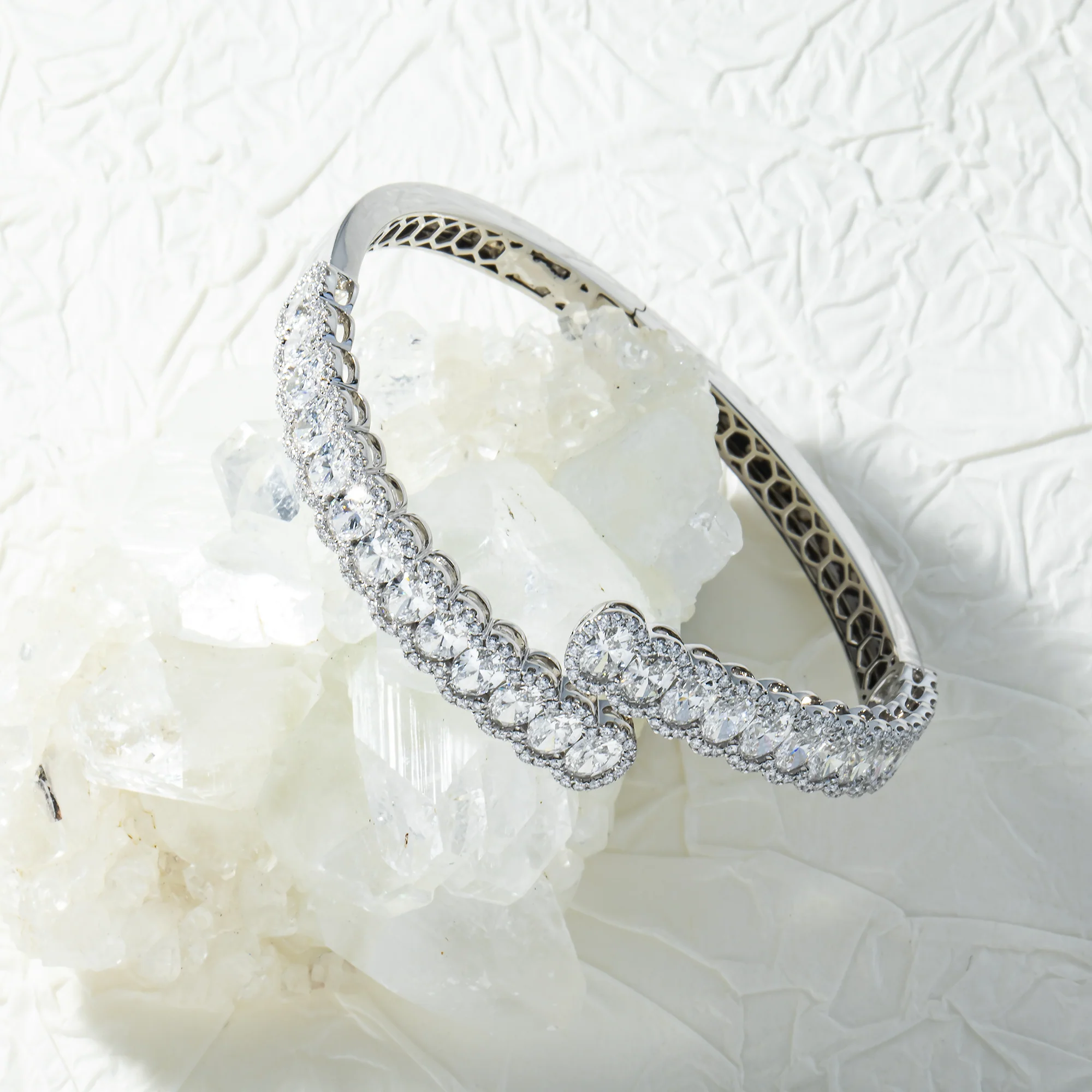 18K White Gold Oval & Round Diamond Bangle Bracelet