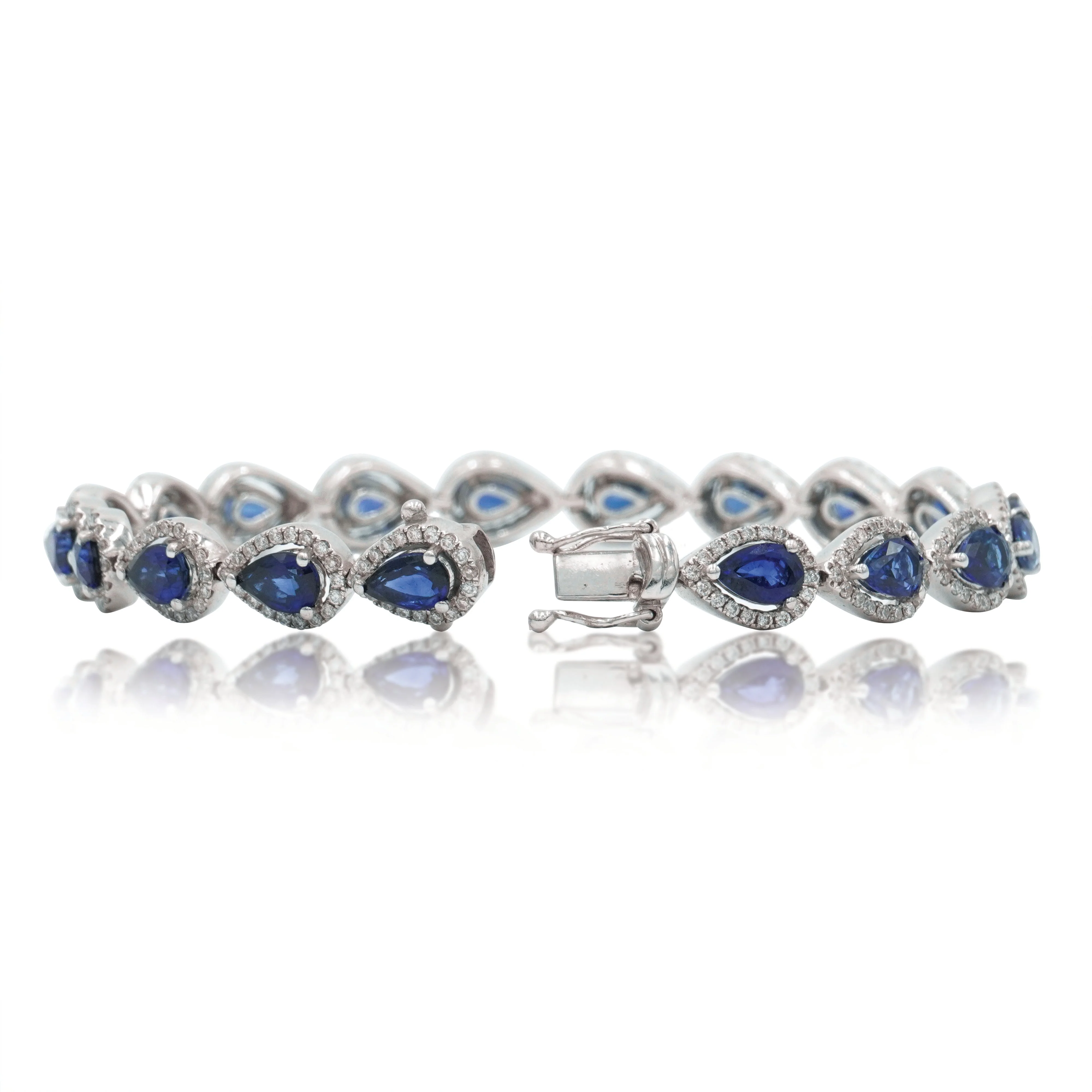 18K White Gold Pear Cut Sapphire & Diamond Bracelet