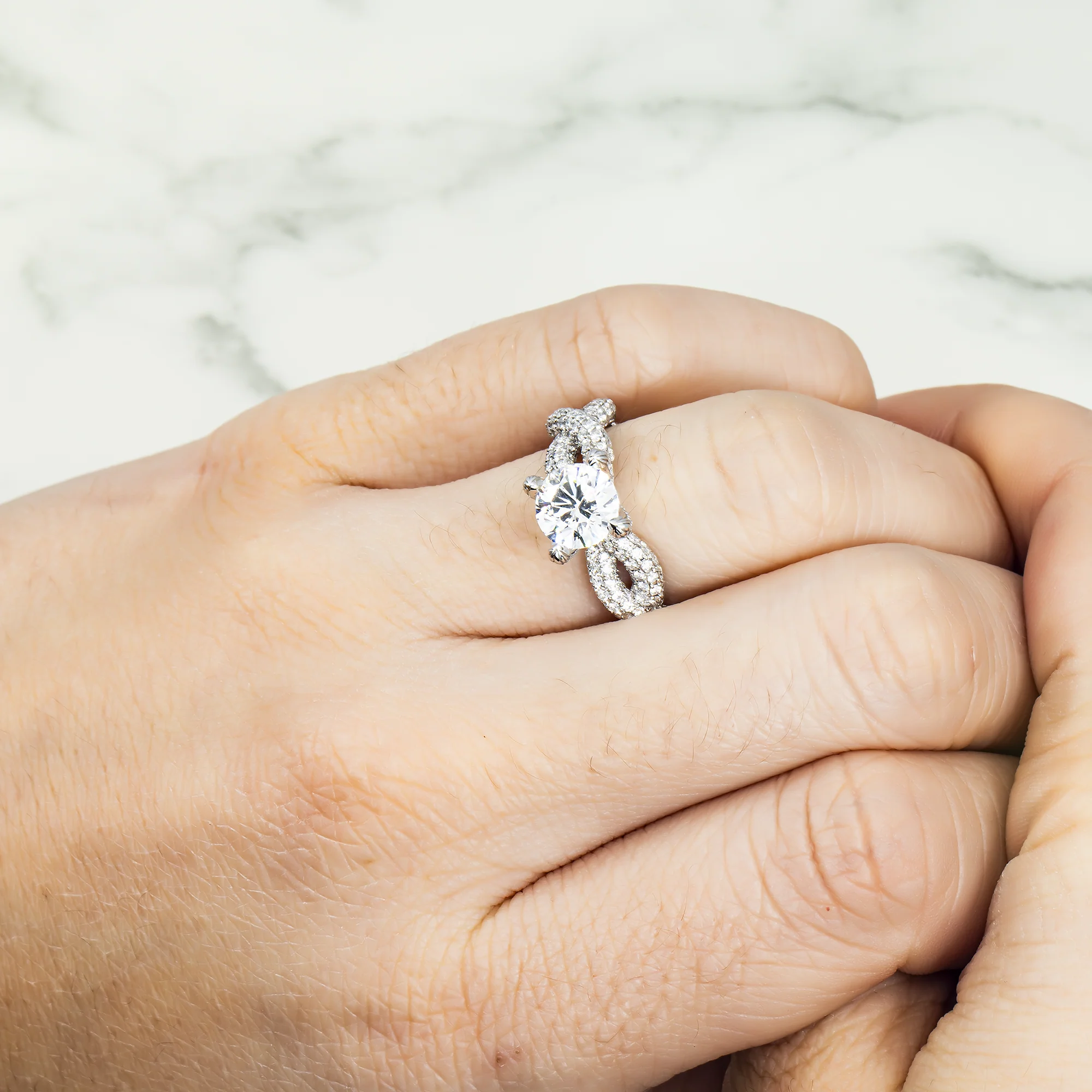 GIA 18K White Gold 1.50ct Round Diamond Infinity Twist Engagement Ring 4.73ctw