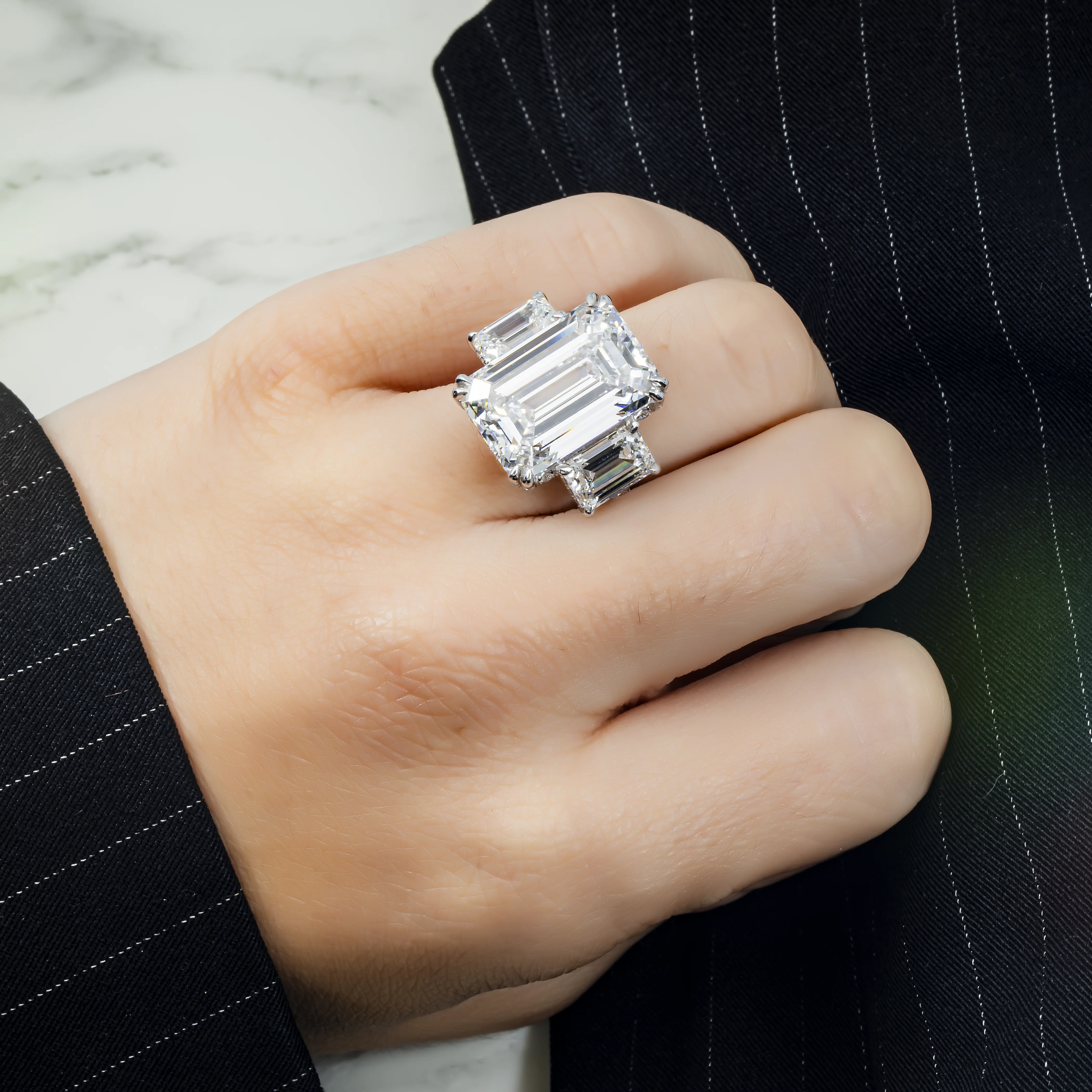 GIA Platinum 18ct Triple Emerald Cut Diamond Engagement Ring 24.42ctw