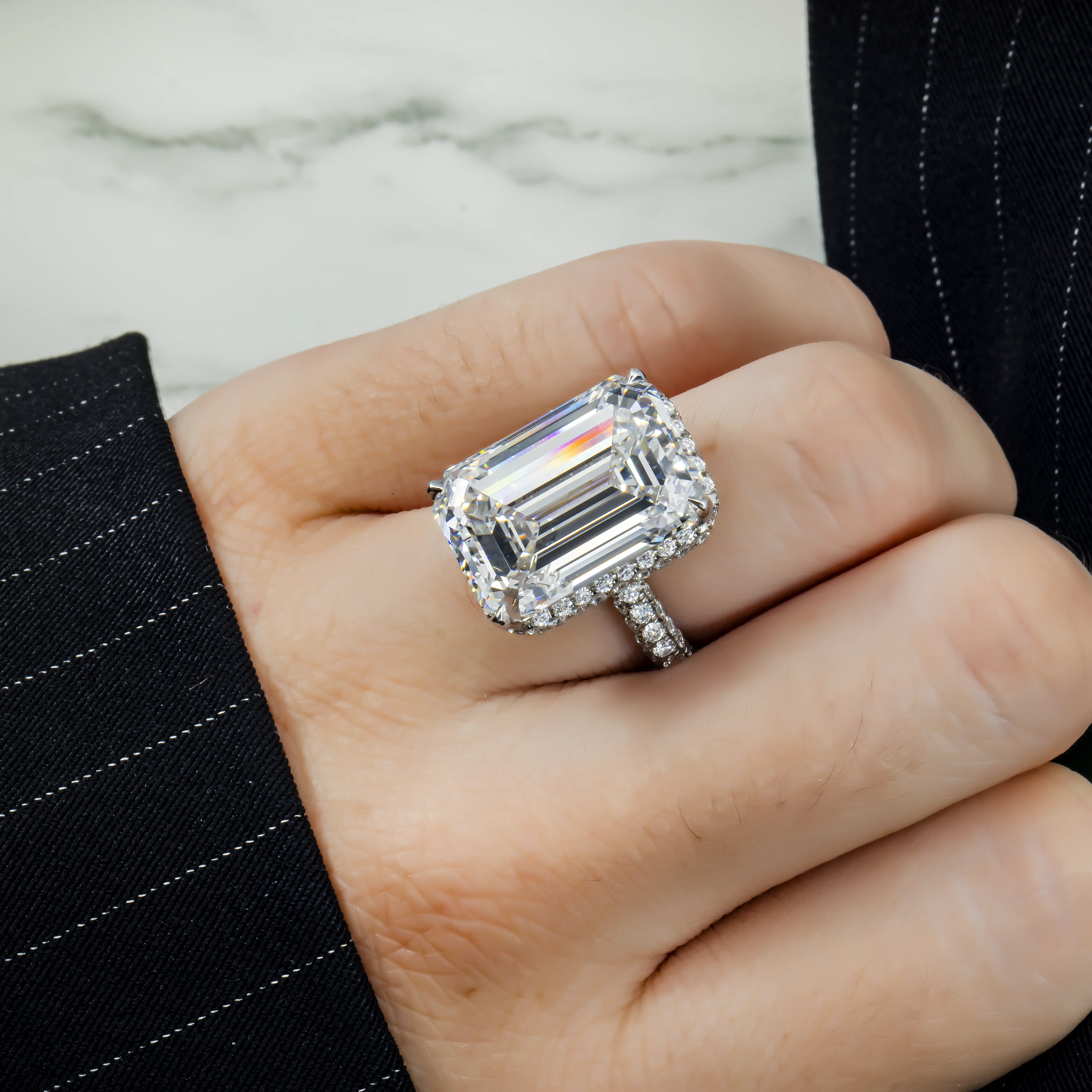 GIA Platinum 21.40ct Emerald Cut Diamond Engagement Ring 22.86ctw