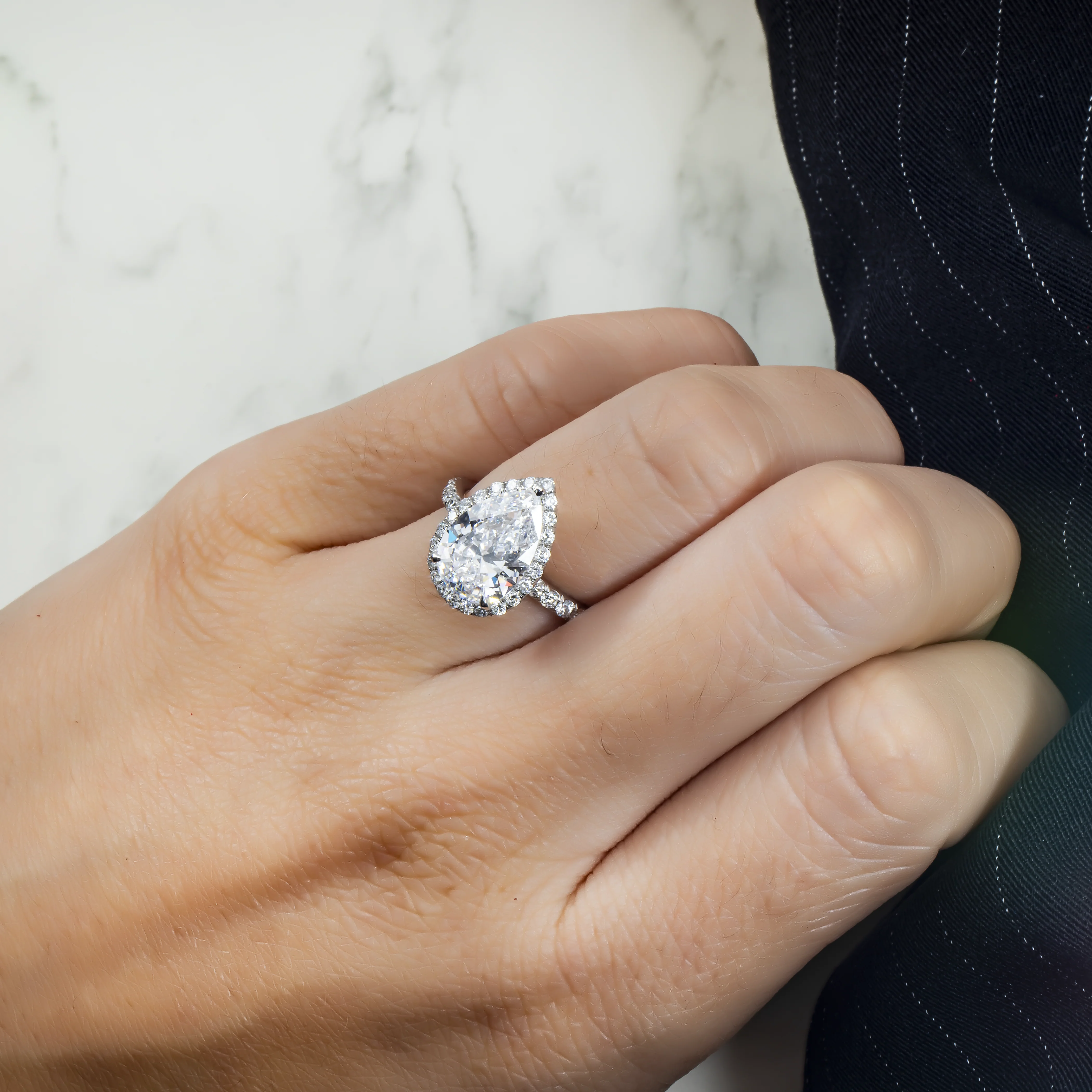 GIA Platinum 3ct Pear Cut Diamond Engagement Ring 3.92ctw