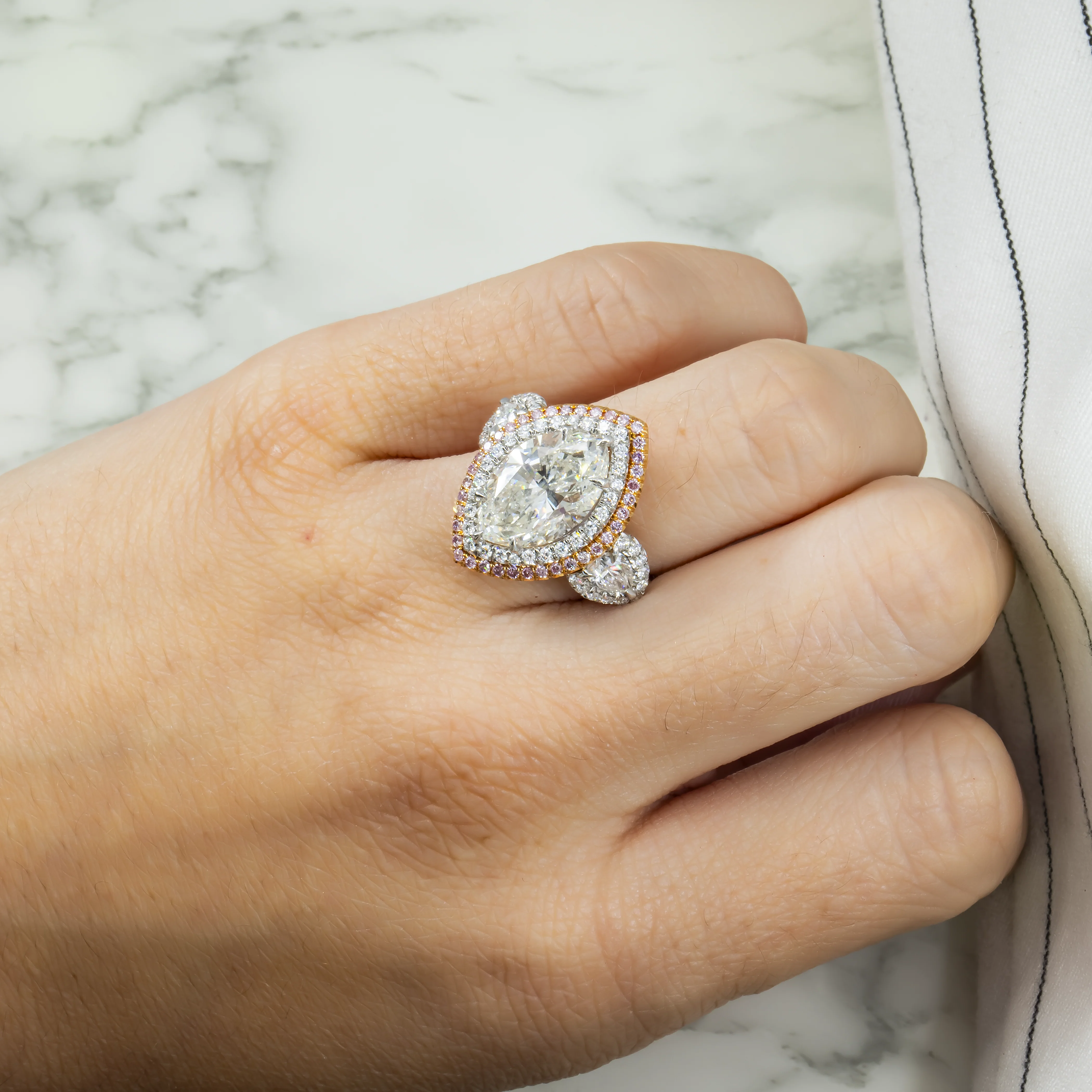 GIA Two Tone Round Pink & Marquise Cut Triple Diamond Ring 7.75ctw