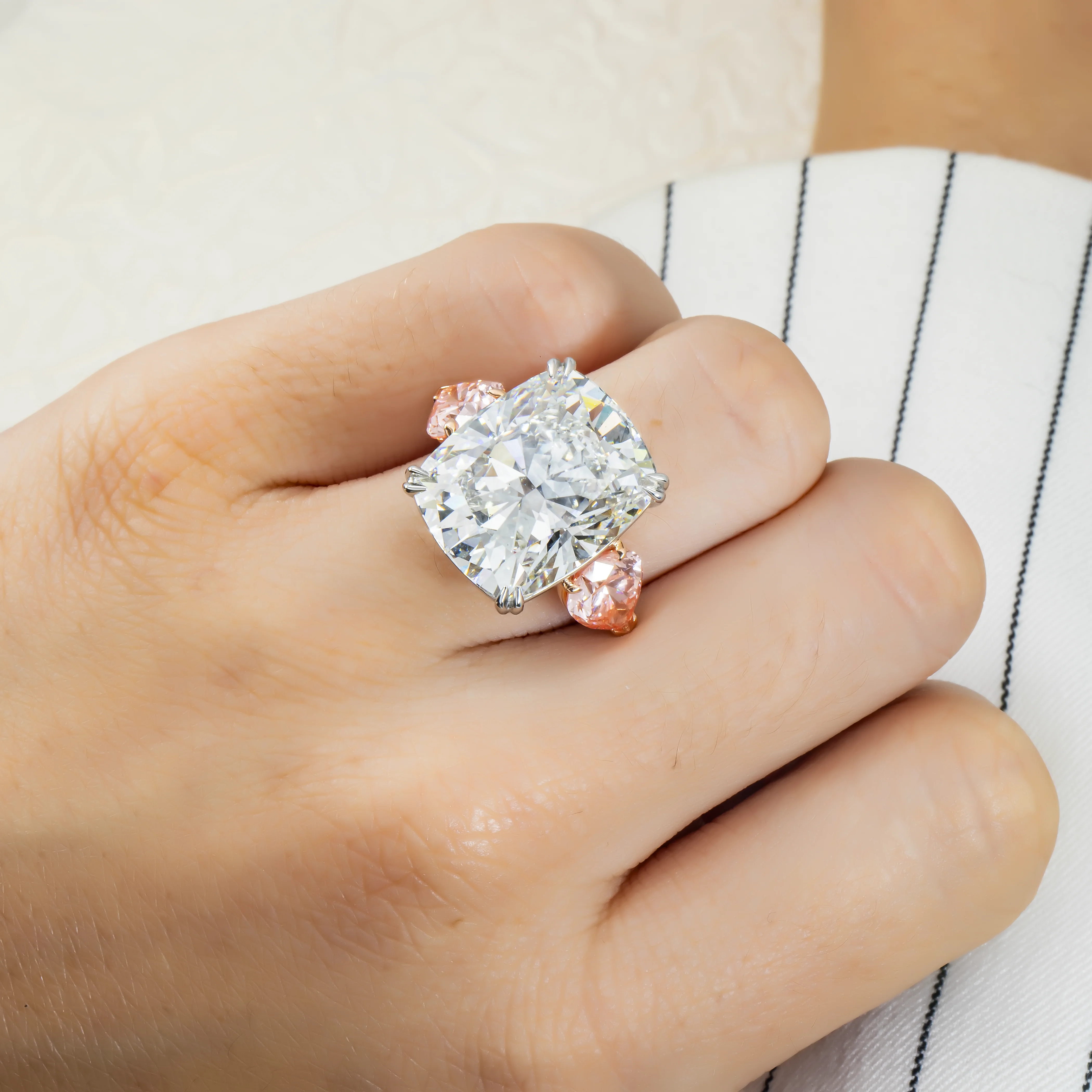 Platinum 20.07ct Cushion Cut & Pink Pear Triple Diamond Engagement Ring 24.09ctw (3 IGI)
