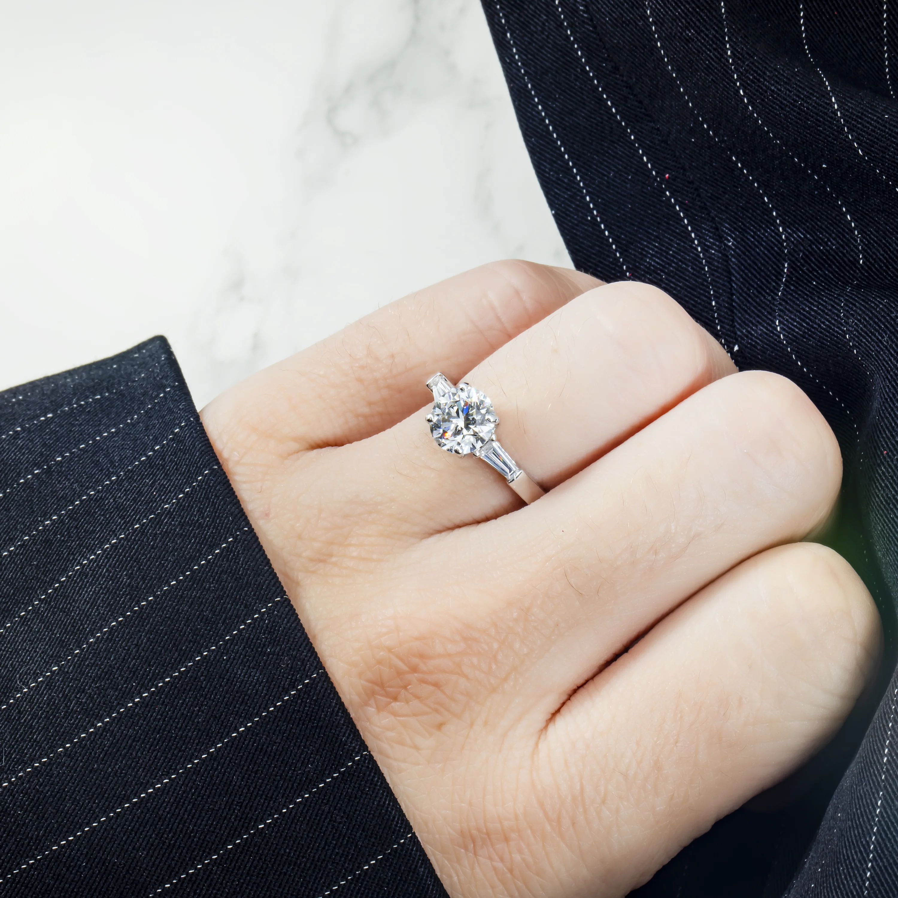 Additional Details: two baguette cut side stones