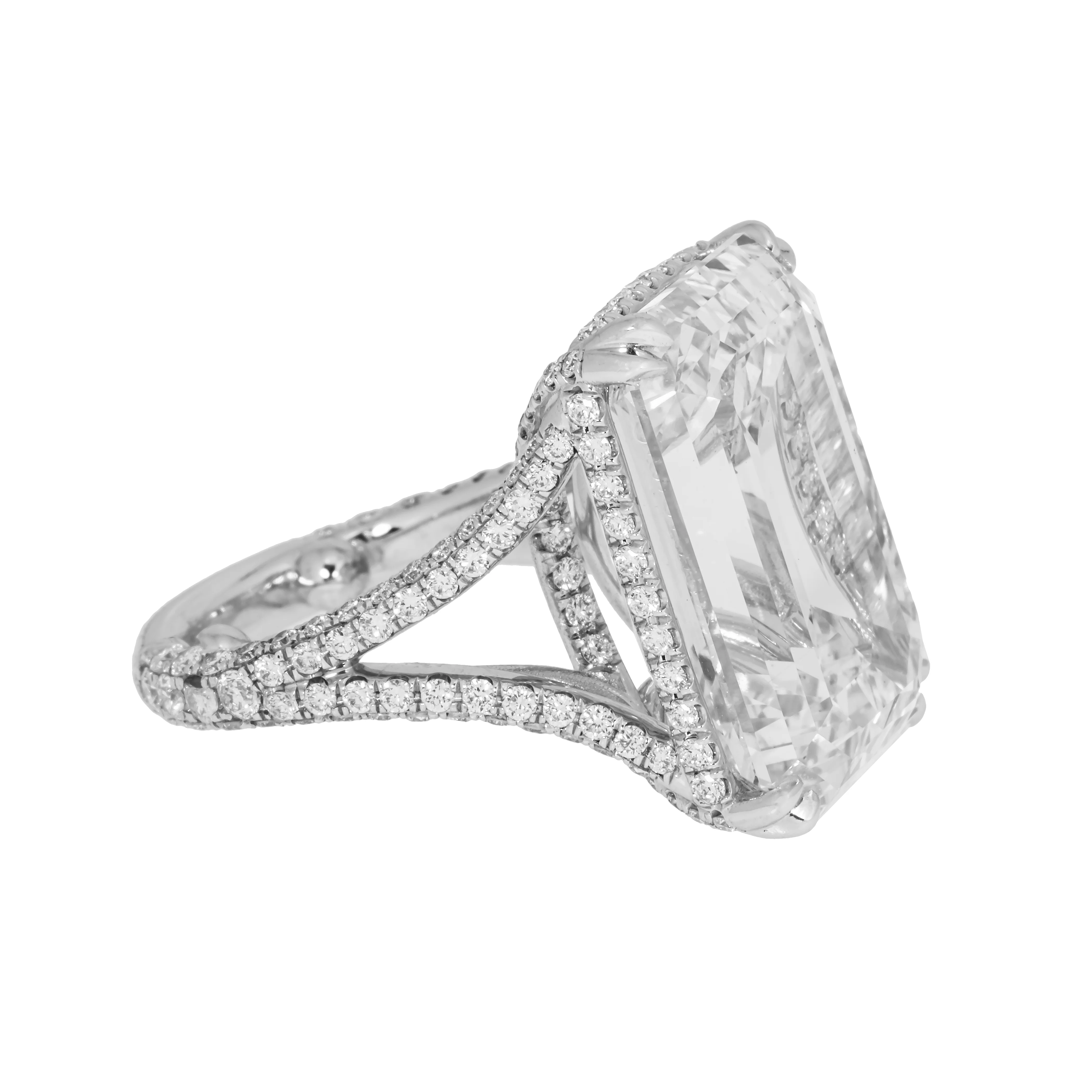Platinum 31.62ct Emerald Cut Diamond Engagement Ring 33.62ctw