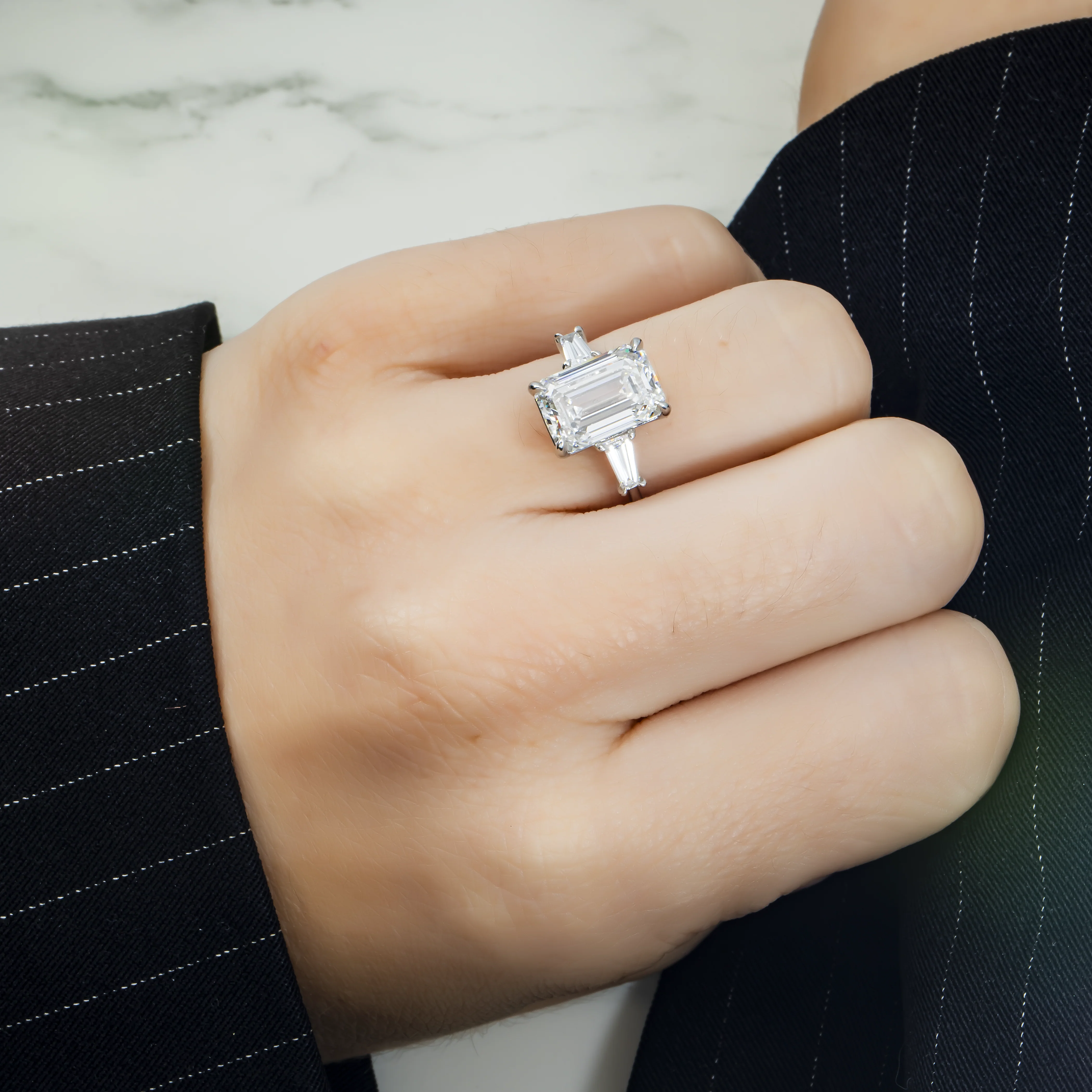 Platinum 4.73ct Emerald Cut Triple Diamond Engagement Ring 5.15ctw